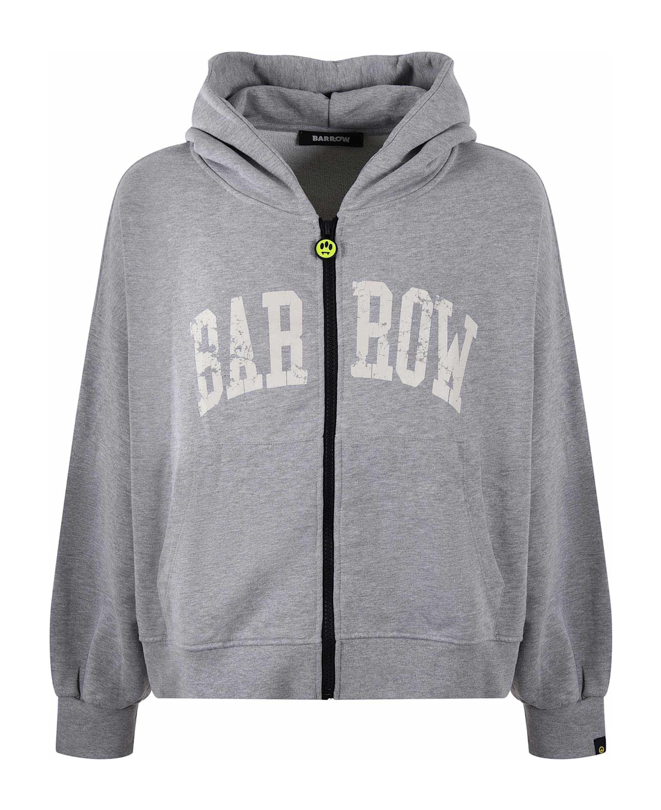 BARROW sweatshirt in gray cotton. Hood. Long sleeves. Zip closure with smile slider. Kangaroo pockets on the front. Flocked logo application on the front. Ribbed cuffs and bottom. "BARROW" print on the front with a vintage effect. Oversize fit. 100% Cotton Measurement in photo S