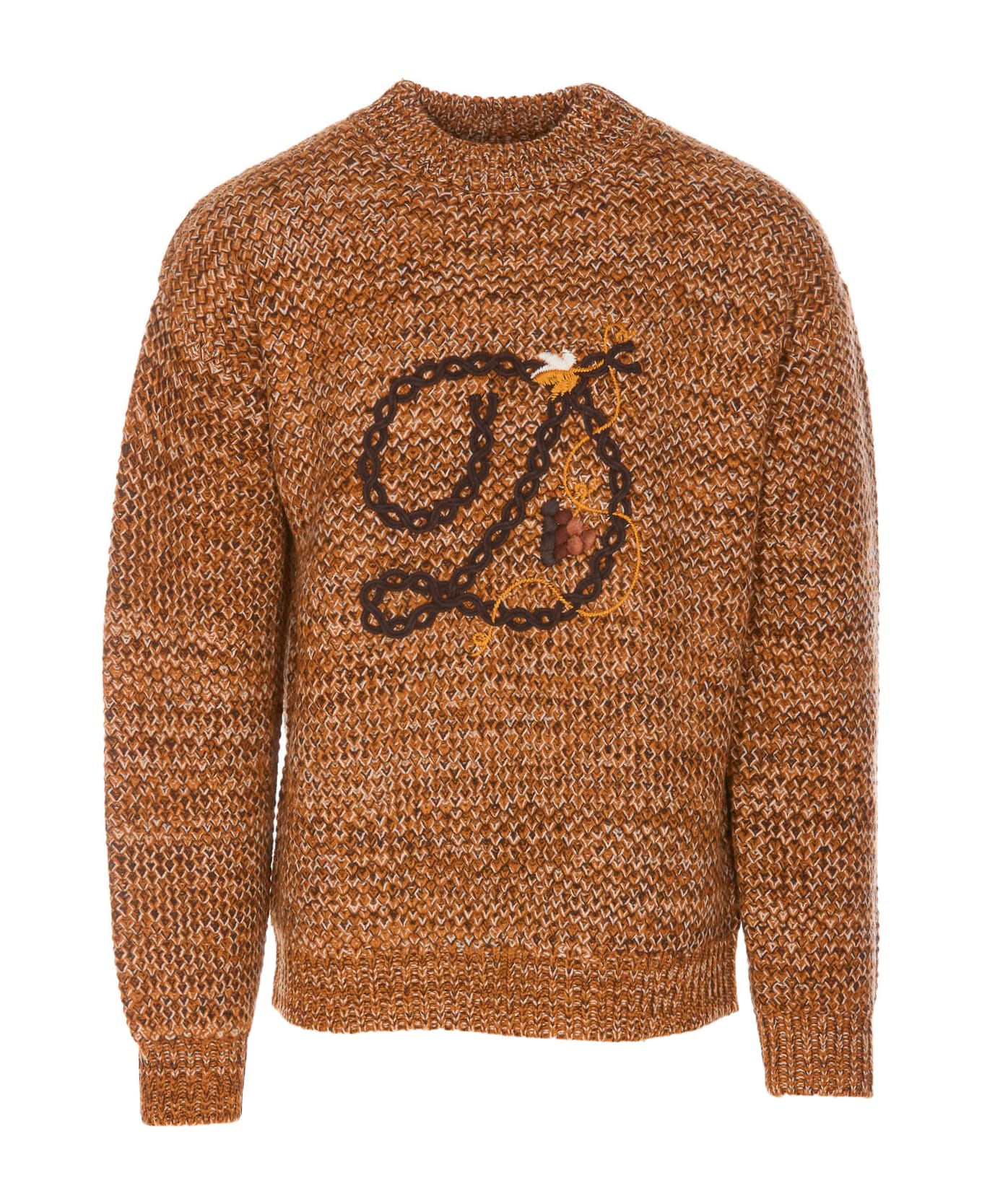 Drole De Monsieur brown D Tresse' sweater, crewneck, long sleeves, embroidered detail on the front