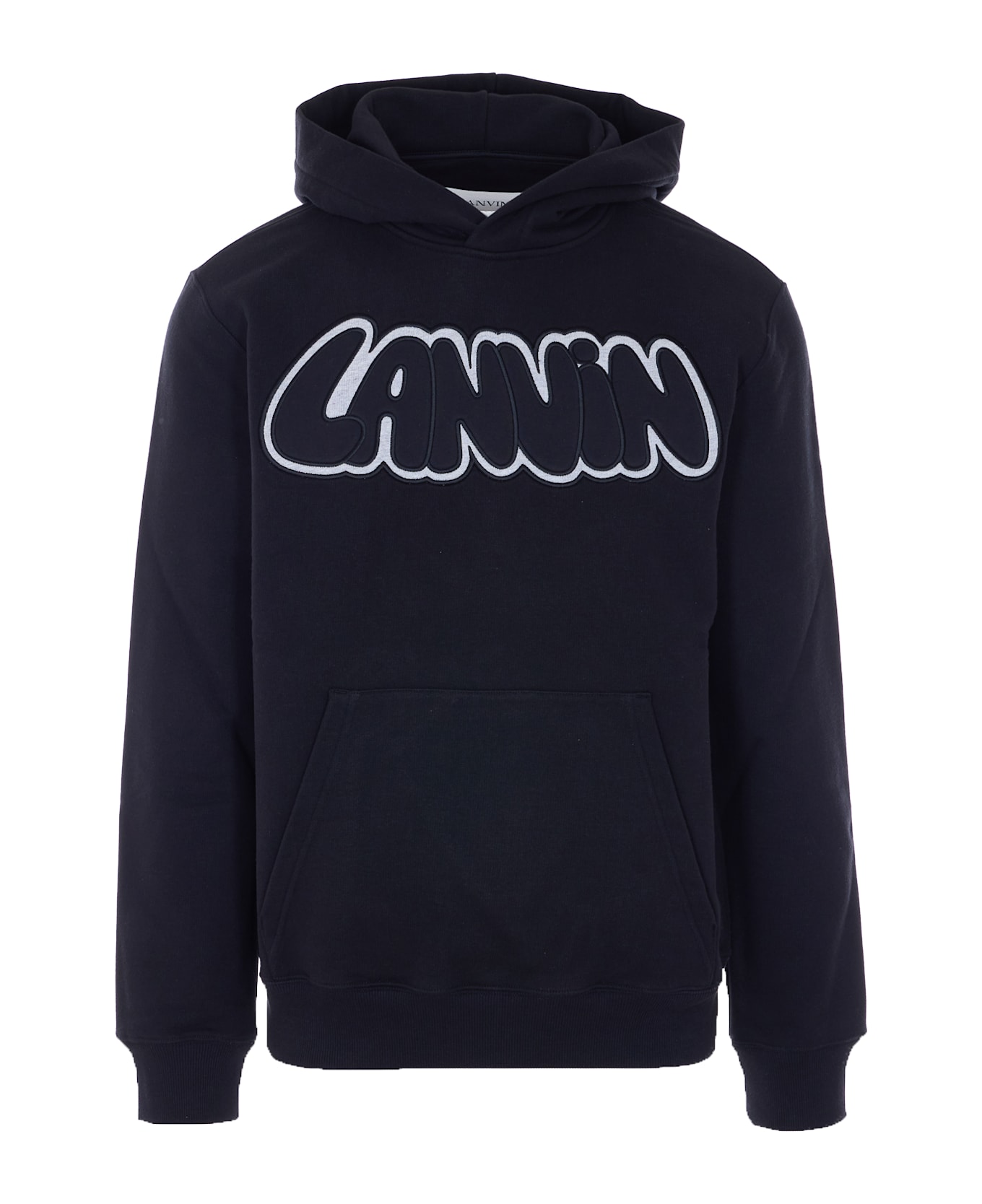 Lanvin black hoodie wigth patch logo on the front, long sleeves, kangaroo pocket Composition: 100% Cotton, 96% Cotton, 4% Elastane
