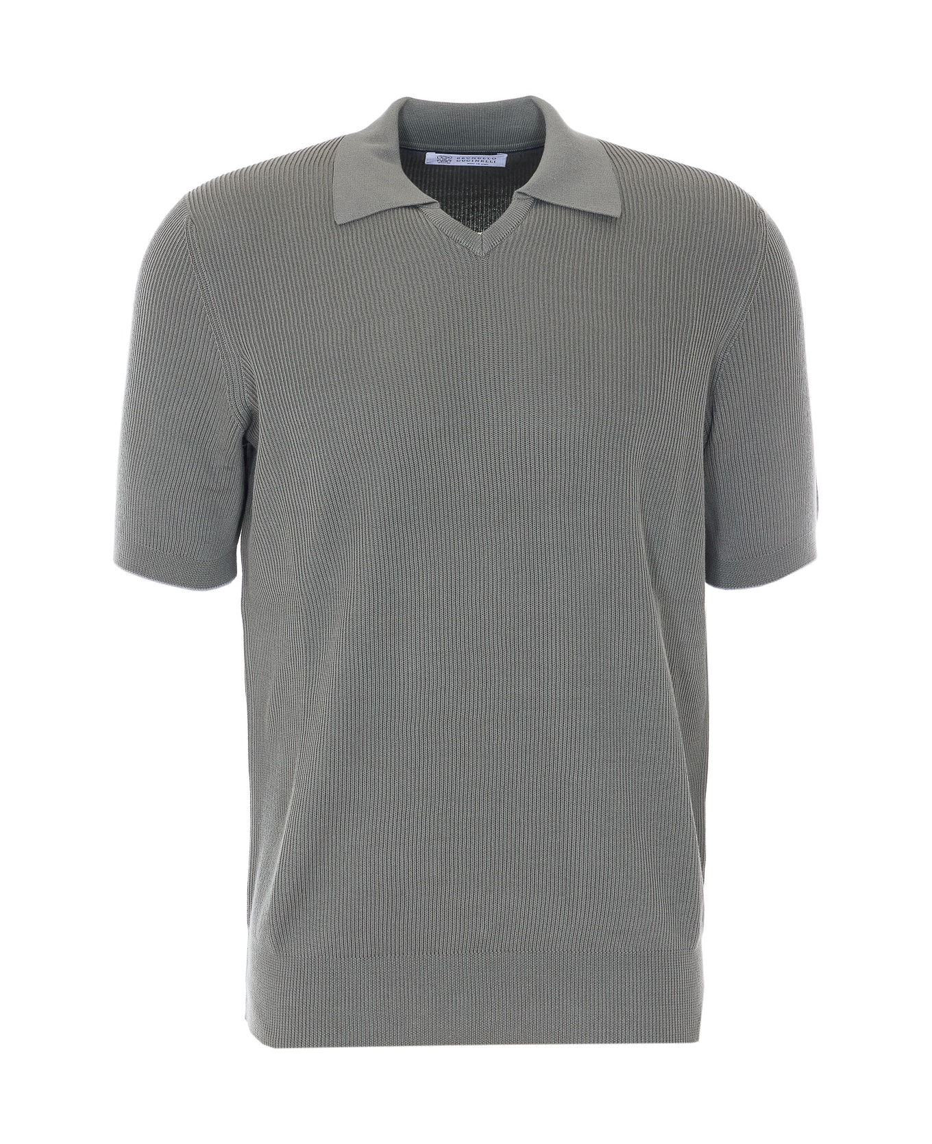Brunello Cucinelli green polo, knitted, v neck, ribbed Composition: 100% Cotton