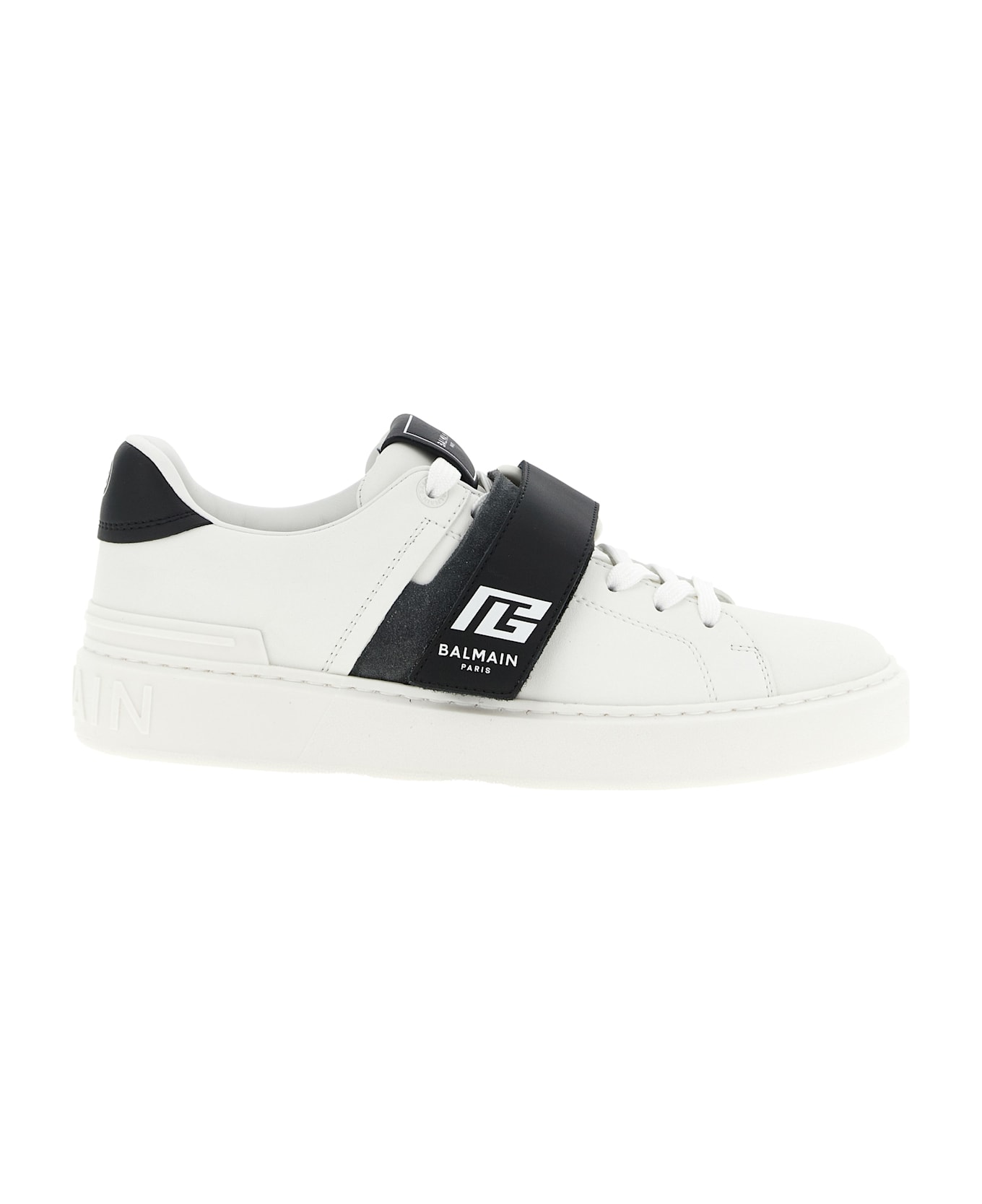 'B-Cout' calf leather sneakers with logo patch tongue, lace closure with contrast buttress, embossed logo and velcro closure, contrast heel with embossed logo, thick rubber sole with embossed logo.
