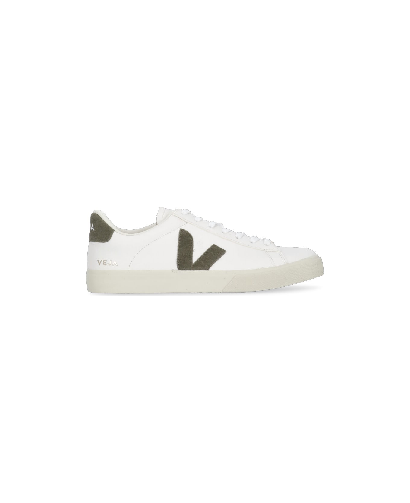 - White Veja leather sneakers for man - Round toe - Front laces fastening - Tongue with tone on tone logo - Side contasting colour V logo - Contrasting colour heel with logo - Rubber sole