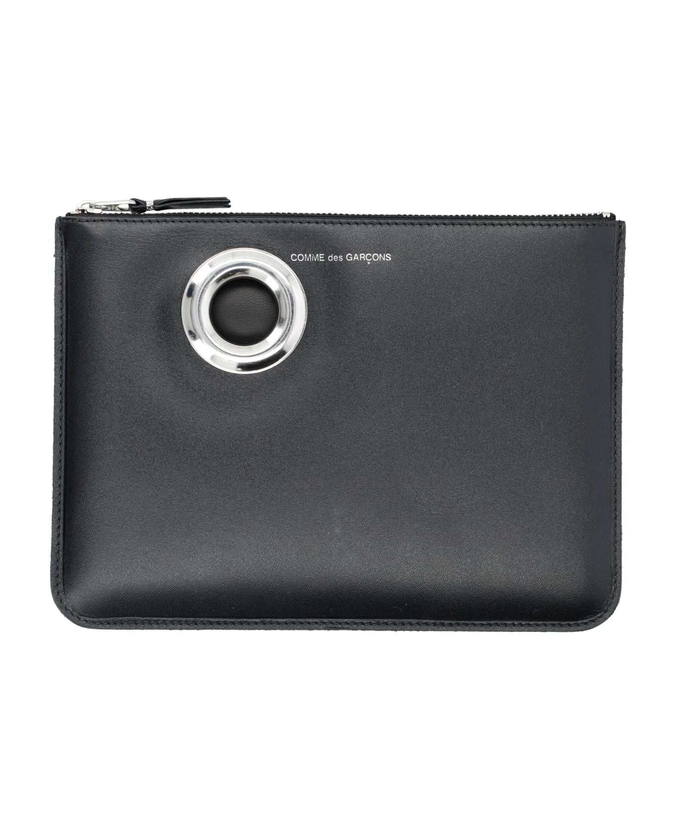 Silver Eyelet Pouch By Comme Des Garçons Wallet. Featuring: Top Zip Fastening Silver-tone Logo Detail To The Front Silver-tone Hardware Distinctive Metal Eyelet Detail Main Compartment Heigth: 16cm Width: 21cm Depth: 1cm