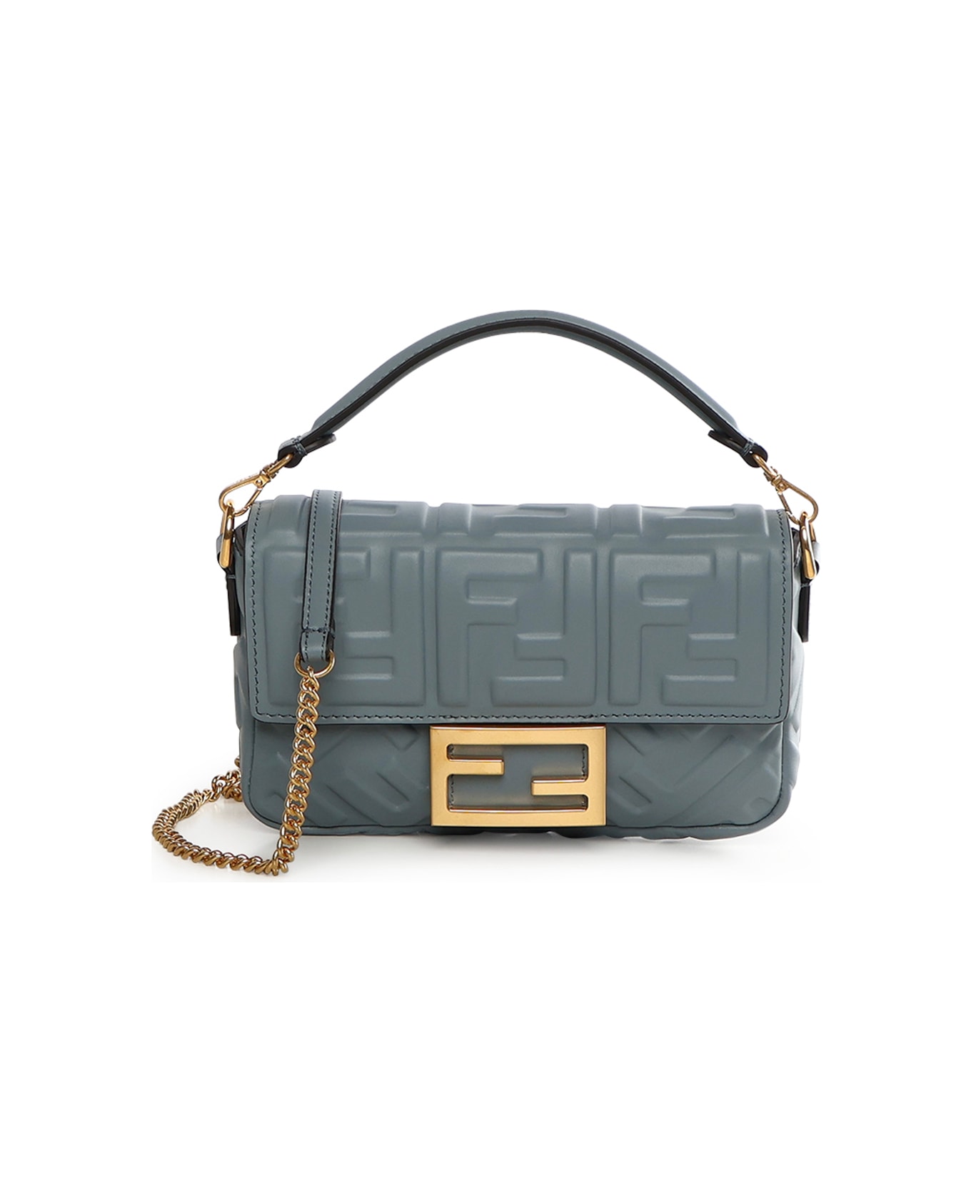 - Made of calfskin - Magnetic button closure - Removable handle and shoulder strap - Dimensions: 20 x 13 x 5 cm - Made in Italy - Color: Light Blue