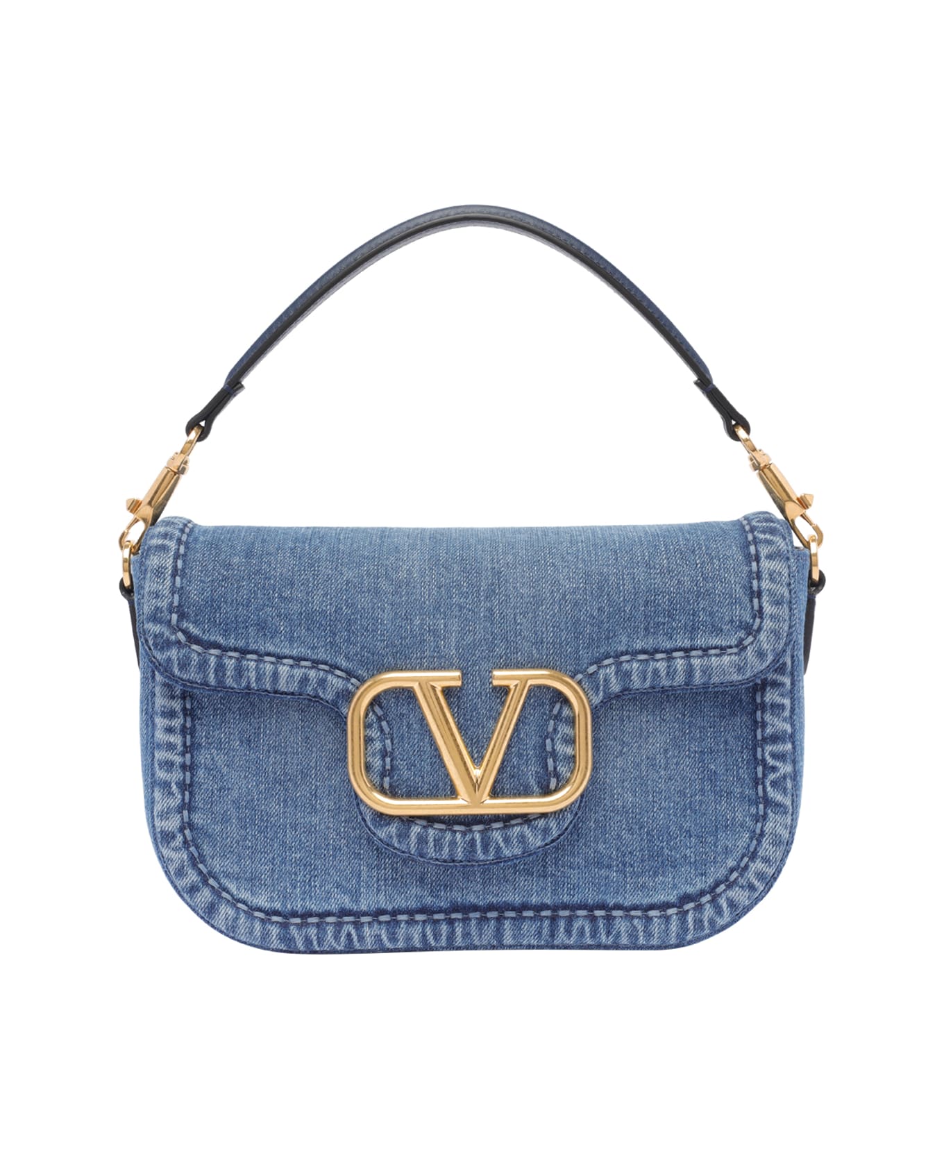Valentino Garavani denim Alltime shoulder bag, inner open pocket, removable strap, adaptable and removable strap, frontal golden logo, denim model Composition: 100% Denim