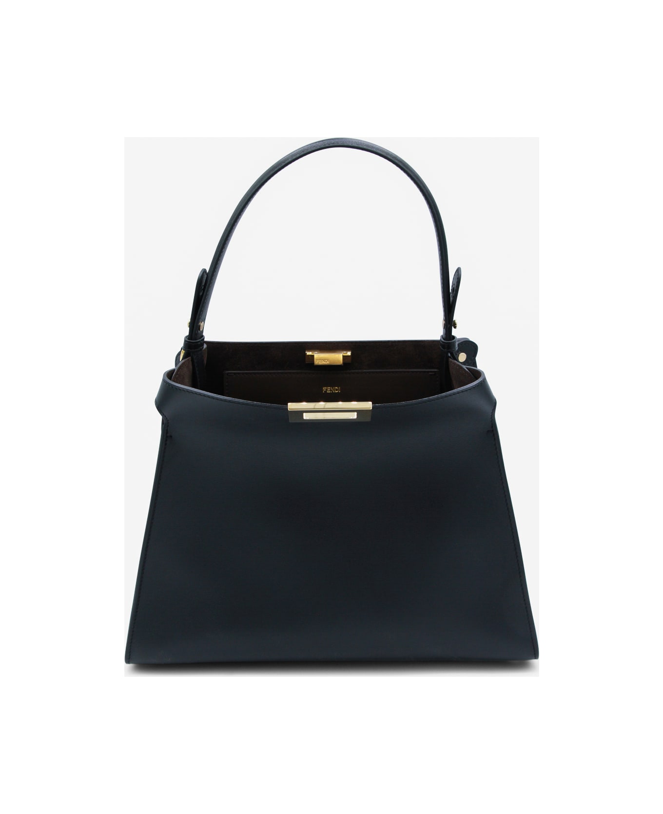 Black and dark brown leather Way large shoulder bag from Fendi featuring top handle, frontal fastening, inside blue suede, gold tone hardware, removable strap and pocket.