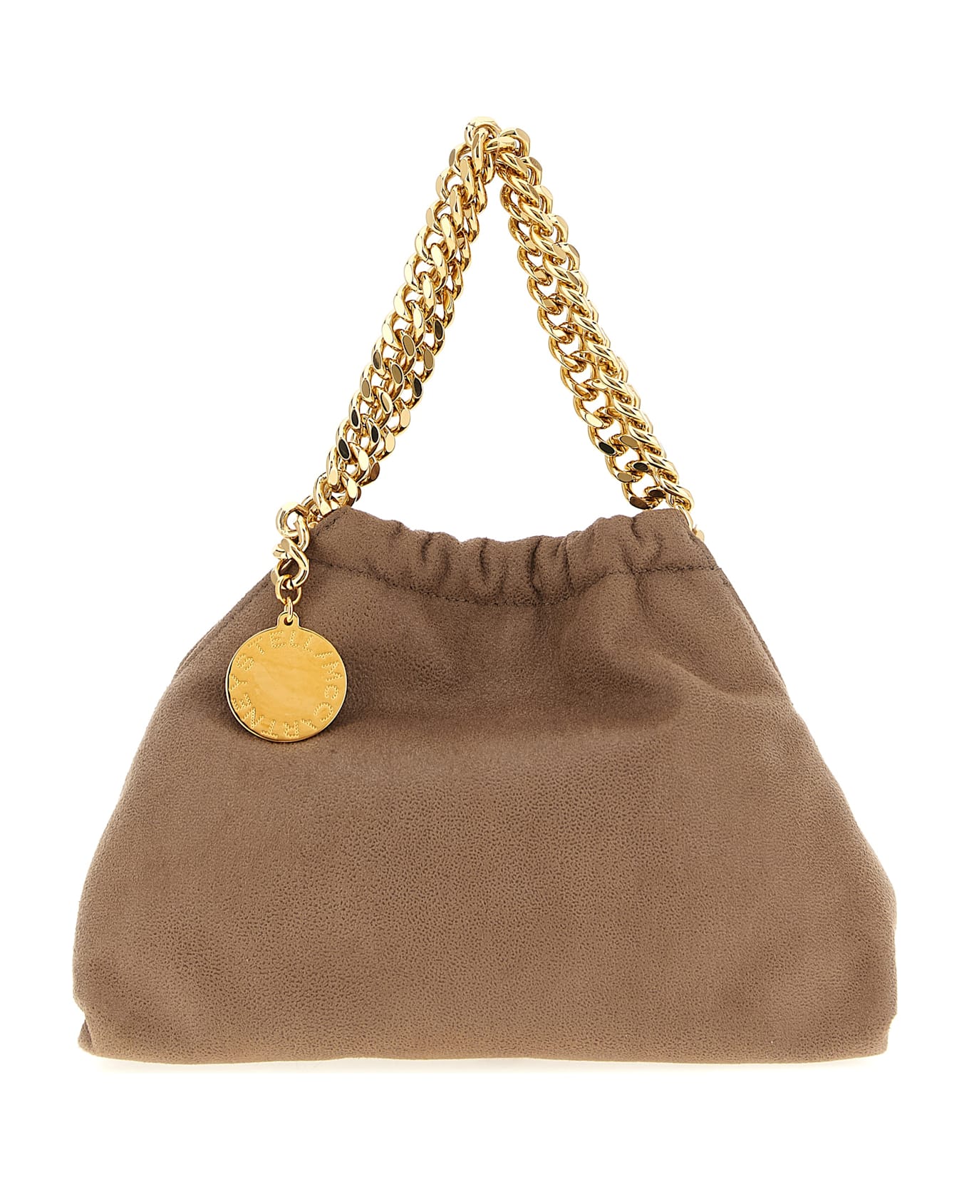 'Falabella' crossbody bag in Shaggy Deer matt vegan fabric with semi-gloss grain, magnetic closure, double handle, diamond-effect chain shoulder strap. SUSTAINABLE: Products that do not use leather respecting cruelty free ethics.