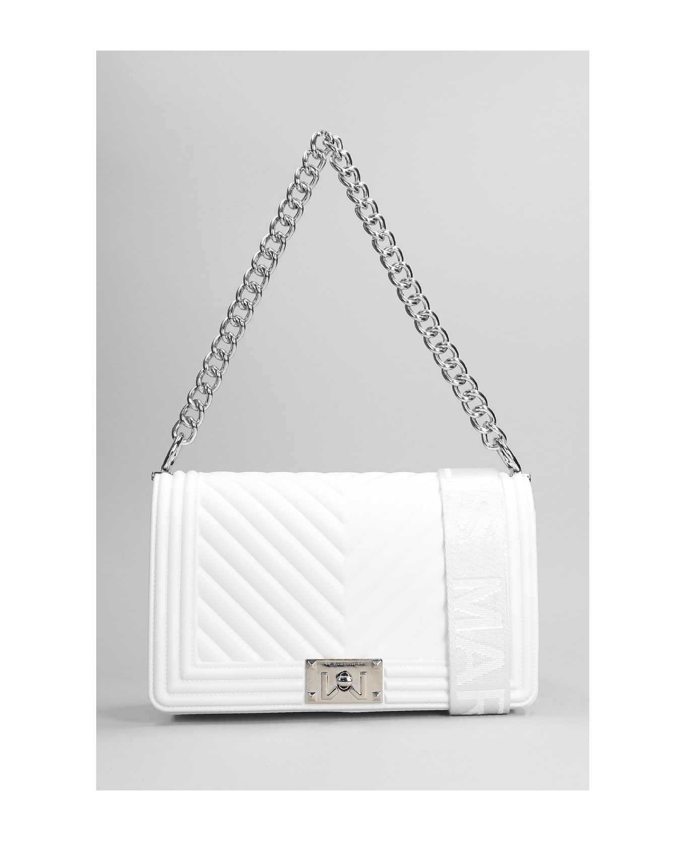Flat M Shoulder bag in white PVC, 100% artificial leather, quilted design, double straps, Made in Italy, turn lock, Height 130 mm, Width 250 mm