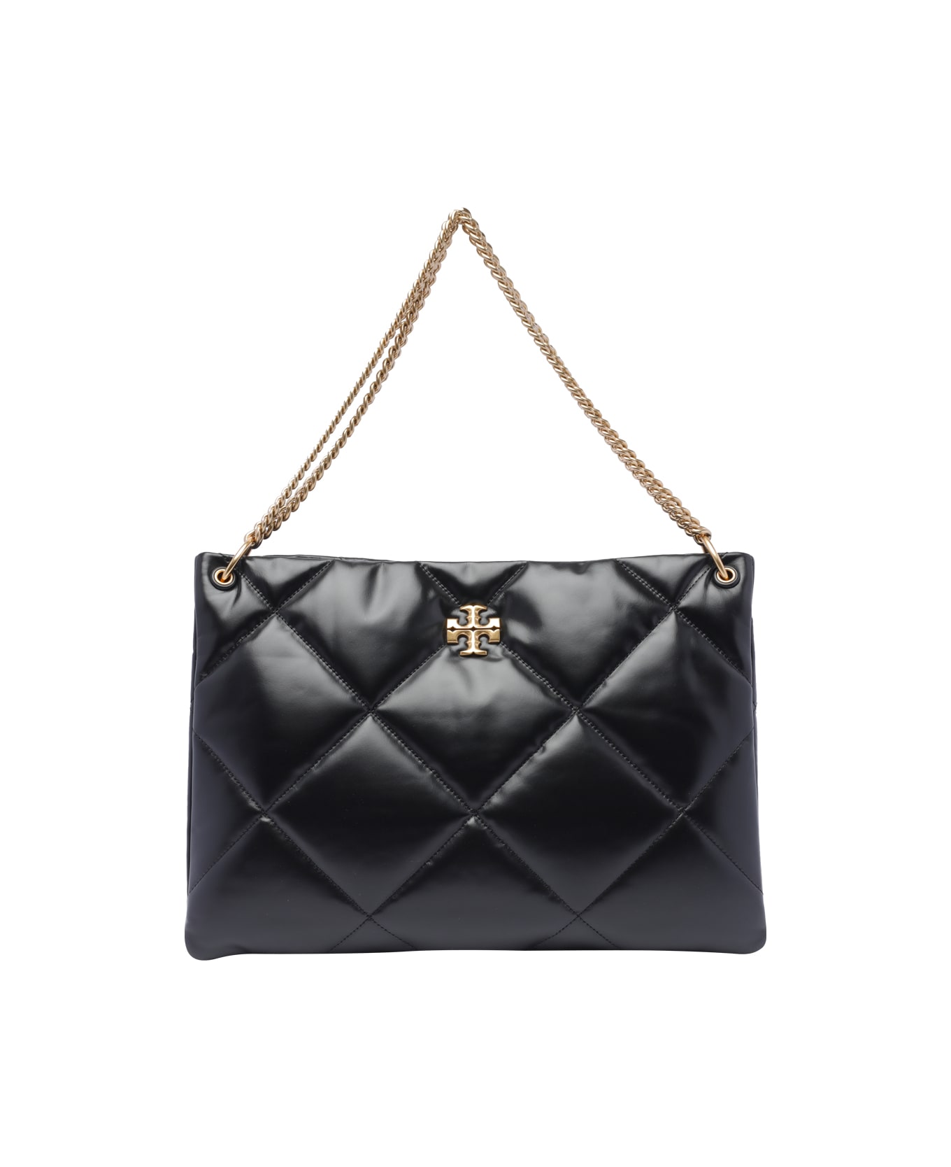 Tory Burch black Kira Diamond quilted shoulder bag, magnetic clsoure, 2 open pockets, one clip pocket, 2 chain handles Composition: 100% Calf Leather