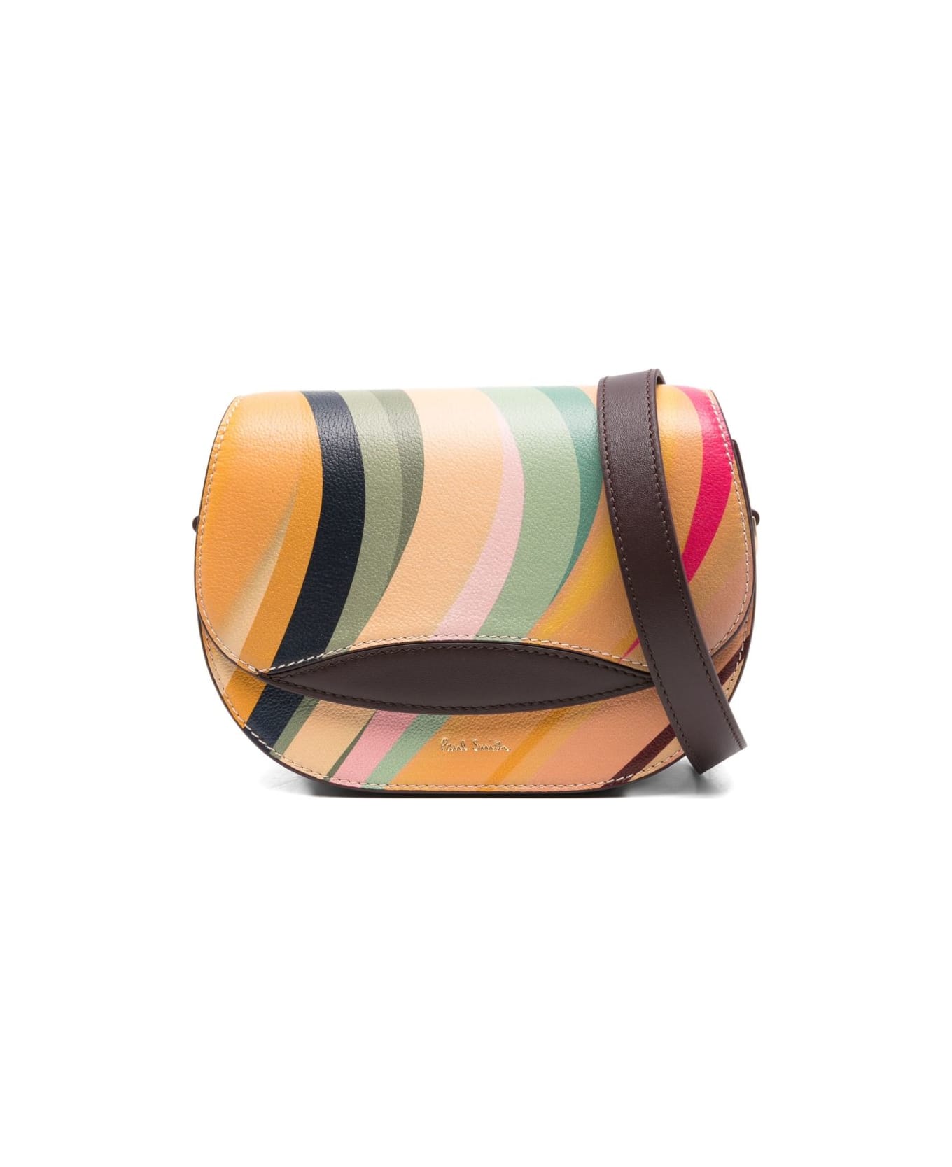 brown and multicolor curved shape swirl pattern leather trim adjustable strap flap closure Composition: Furs & Skins->calf Leather100. , 0%