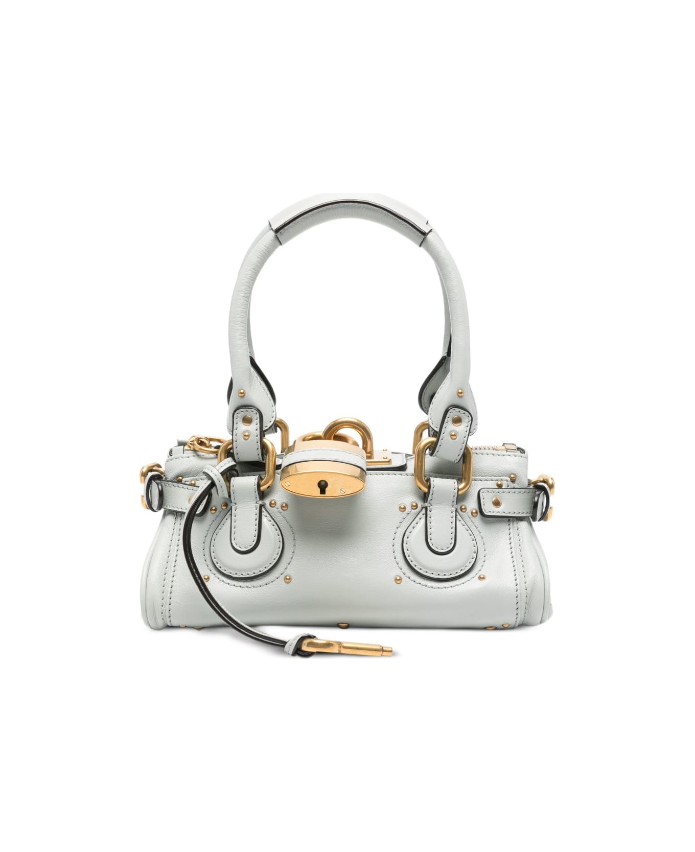 aqua grey leather grained padlock top handle gold-tone hardware key detail This piece comes complete with a protective dust bag. Composition: 100% Leather