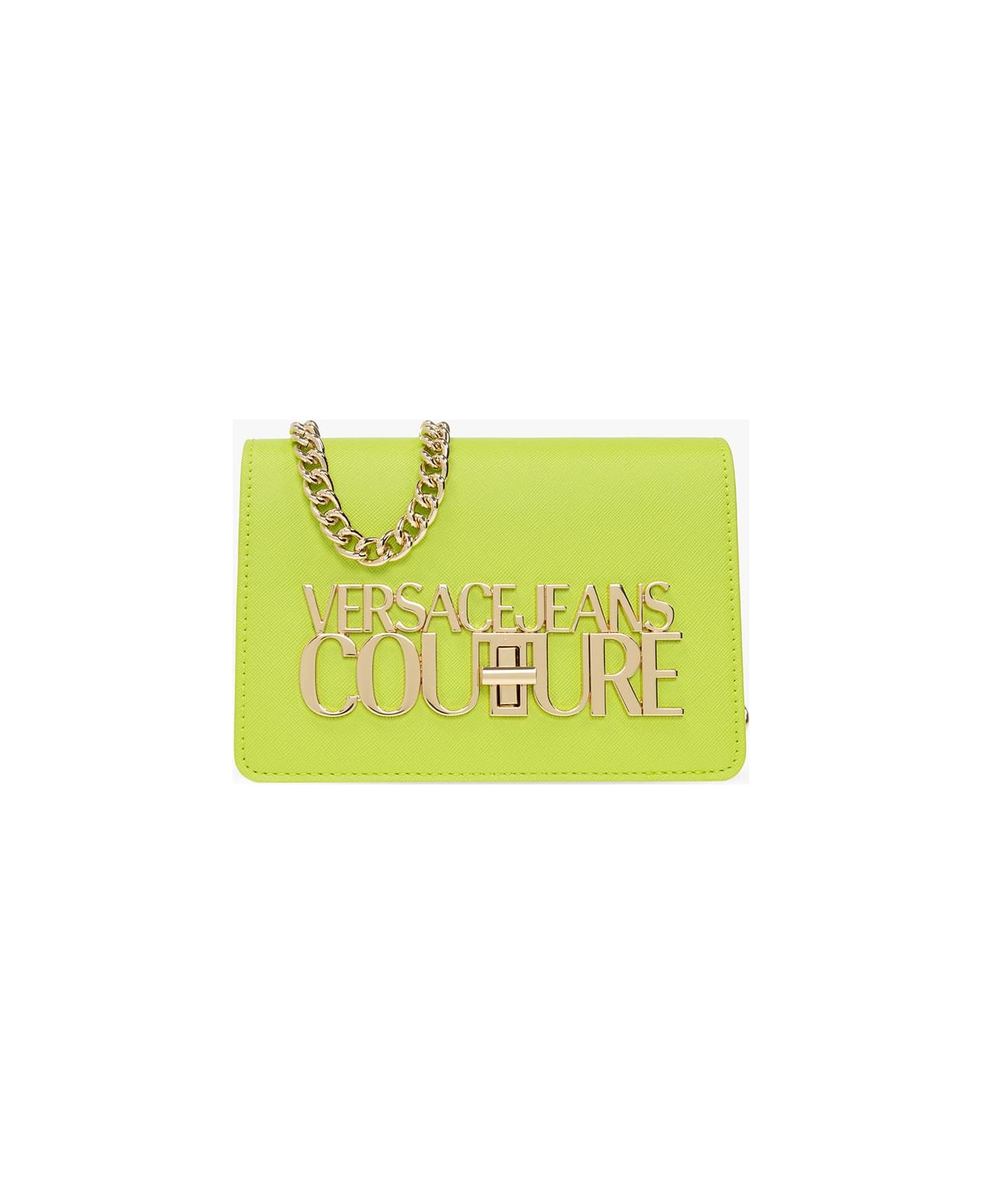 Green shoulder bag from Versace Jeans Couture. Made of faux leather, this design features a twist closure and is decorated with a metal logo detail. It is complete with a snap-fastened back pocket, detachable chain, adjustable shoulder strap, gold-tone me