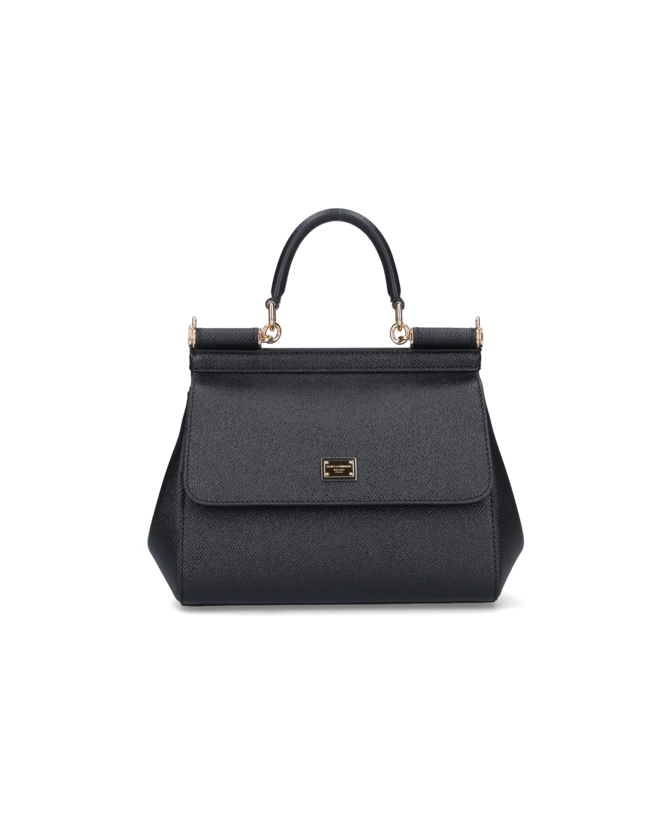 Dolce & Gabbana Small 'Sicily' Bag, top handle, front flap, snap button closure, metal logo plate, removable adjustable shoulder strap, inside pocket, metal feet, animalier lining. Autum Winter 2022 2023, womans accessories. Composition: 100% Leather