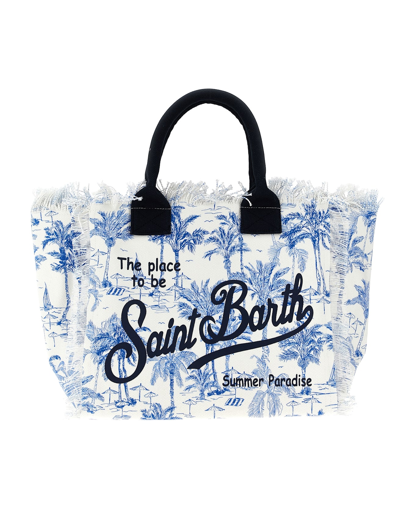 Vanity' shoulder bag in all-over toile de jouy print cotton canvas, fringed edges, logo print on the front and back, double fixed handle, top zip closure, and cotton lining. Composition: 100% cotton
