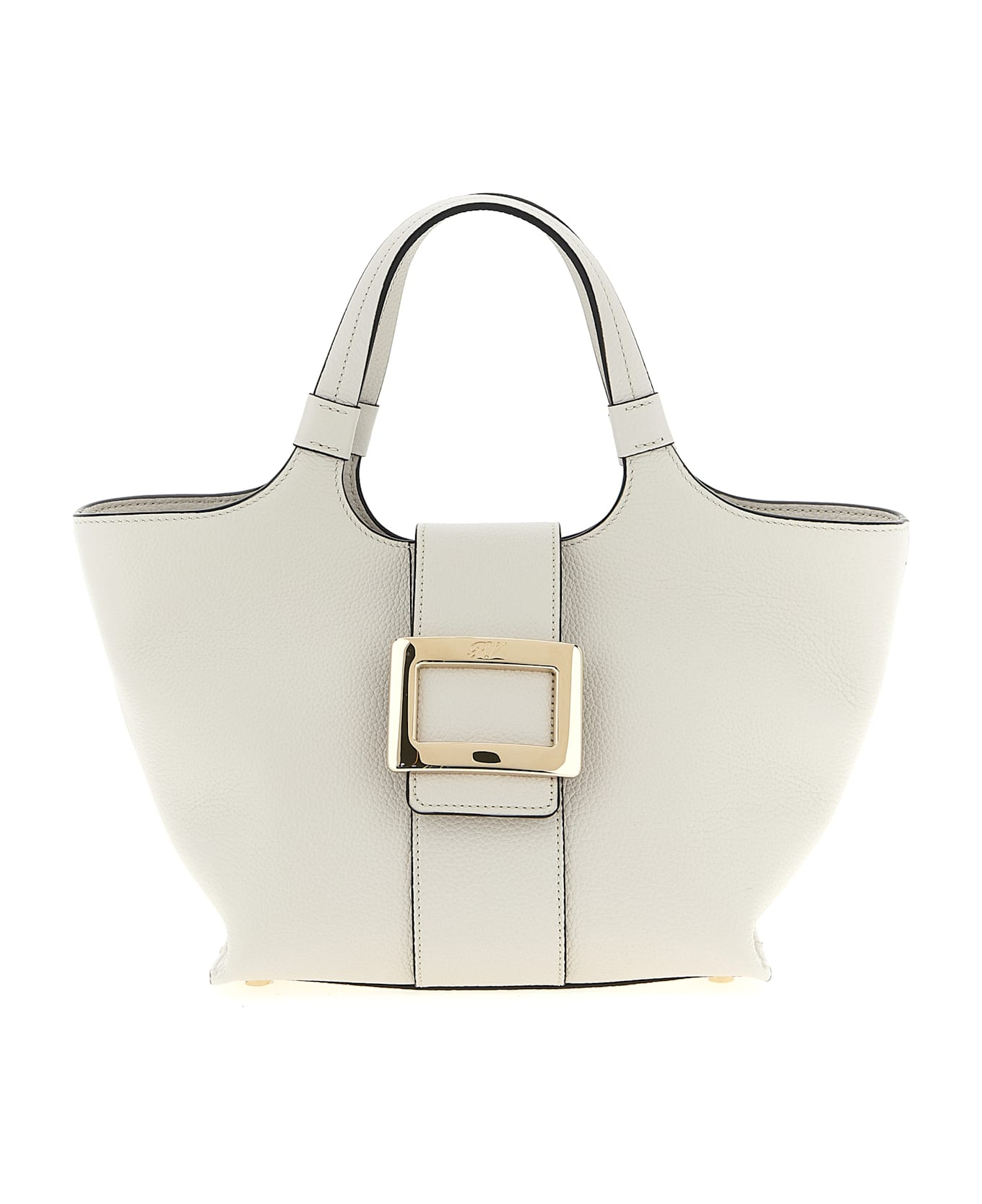 Mini shopping bag in grainy leather, magnetic flap band closure with metal 'Belle Vivier' buckle, double fixed handle, rigid base with metal feet, removable shoulder strap.