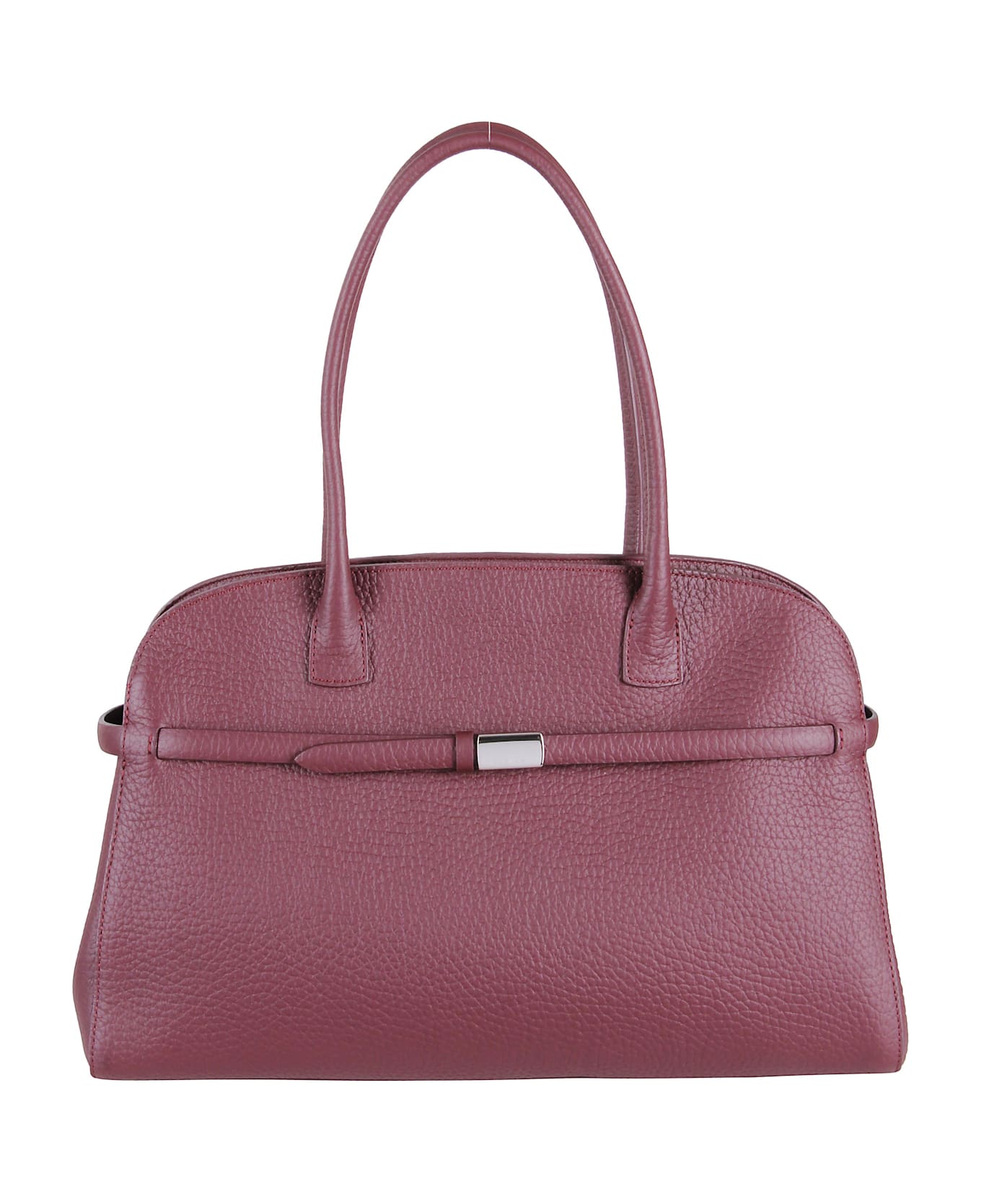 Aura bag -Orciani -Color chianti -Double handles -One internal compartment -Front logo -Buckle -Magnetic button closure -Adjustable and removable shoulder strap -Dimensions: Width 41cm x Height 26cm x Depth 14cm