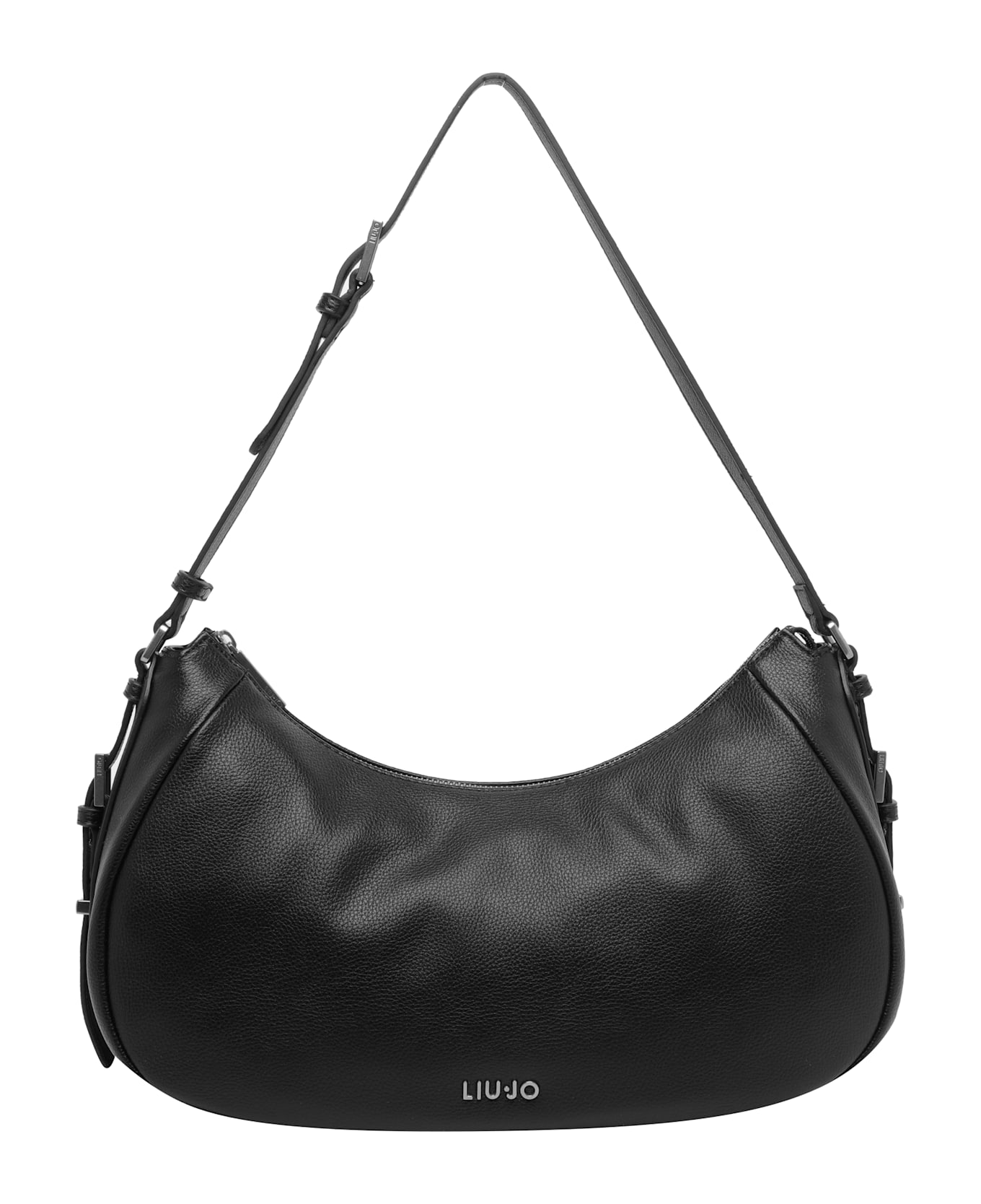 Liu Jo black Medium hobo bag, zip closure, inner zipped pocket, adaptable strap, frontal logo Composition: 100% Polyester