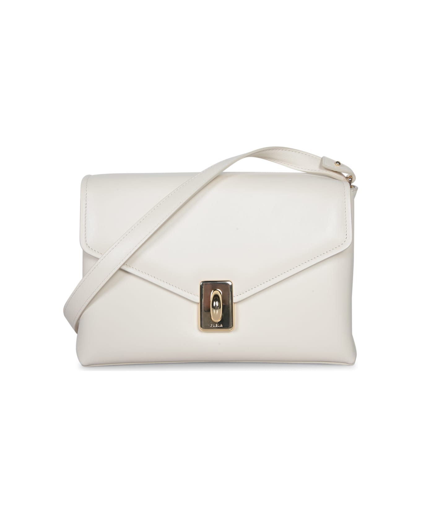 Timeless elegance with Furla's Meridiana Bag, finished in smooth cream leather, featuring an iconic lock closure for a touch of refined security. Composition: 100% Leather