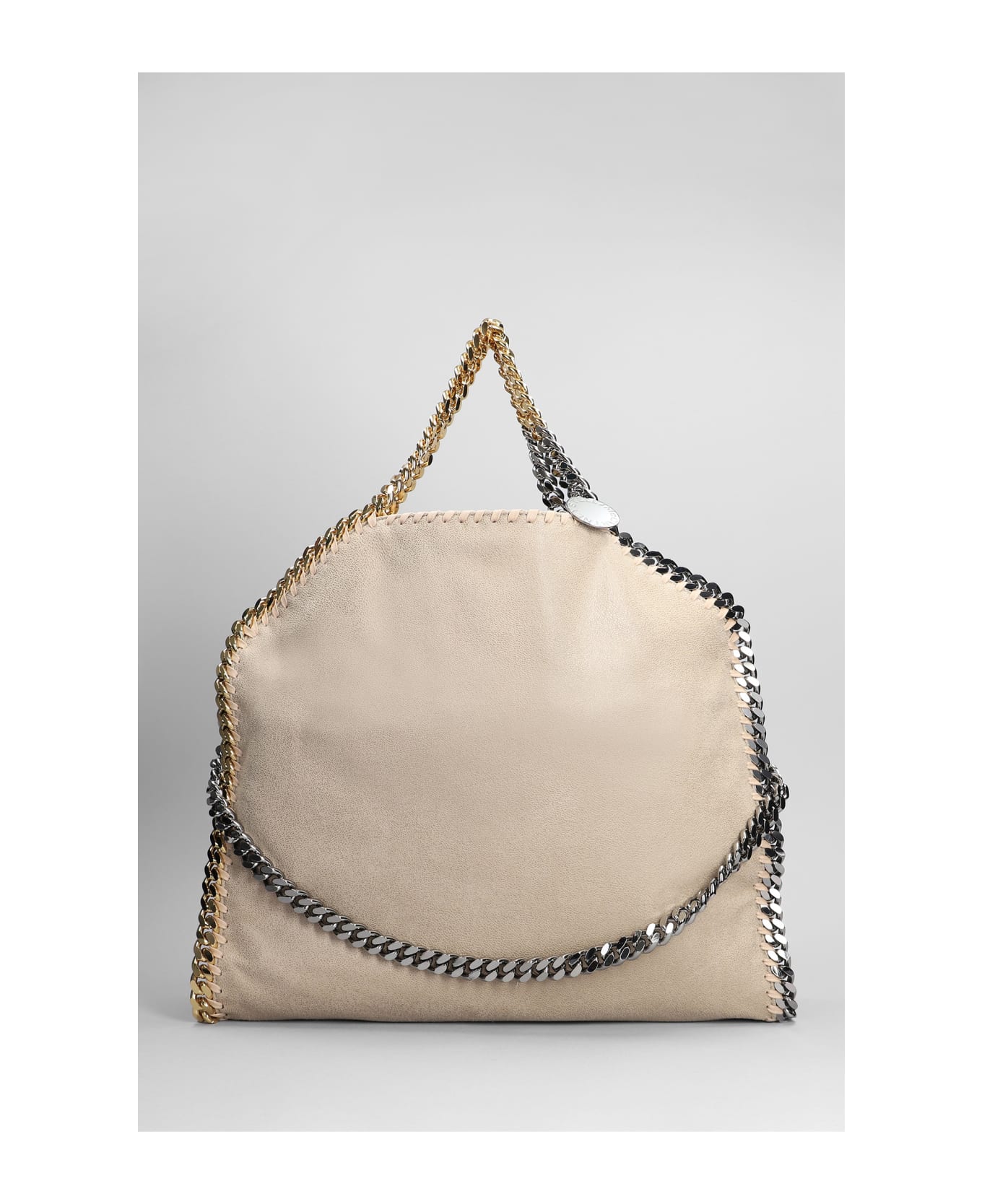 Tote in beige polyester, chain shoulder strap, double handle, magnetic closure, gold hardware, logo tag, Made in Italy, 100% artificial leather, Height 250 mm, Width 400 mm