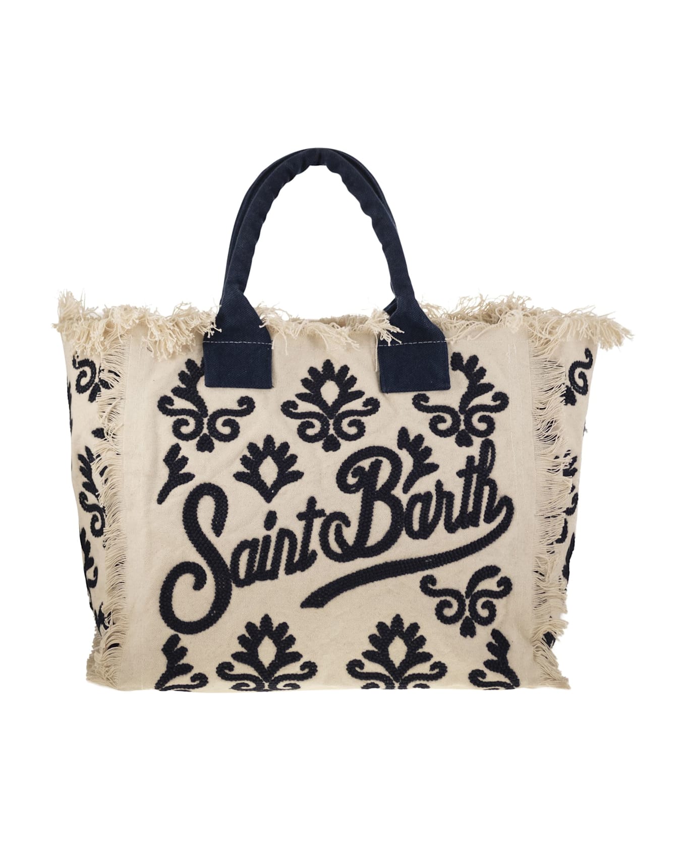 Designed not only for days at the beach and summer getaways, but also for leisure and holidays. The spacious interior makes it perfect for carrying essentials, while the sturdy cotton canvas ensures durability. The Vanity tote is decorated with a variety of embroideries that add a touch of style to your ensemble. Elevate your fashion game with this trendy and functional accessory that seamlessly transitions from beach to city style. - Vanity tote bag in cotton canvas with fringes - All-over embroidery - Printed Saint Barth logo - Inside zip flap - Inside zip pocket DESIGNER ID: VANI024 01553H