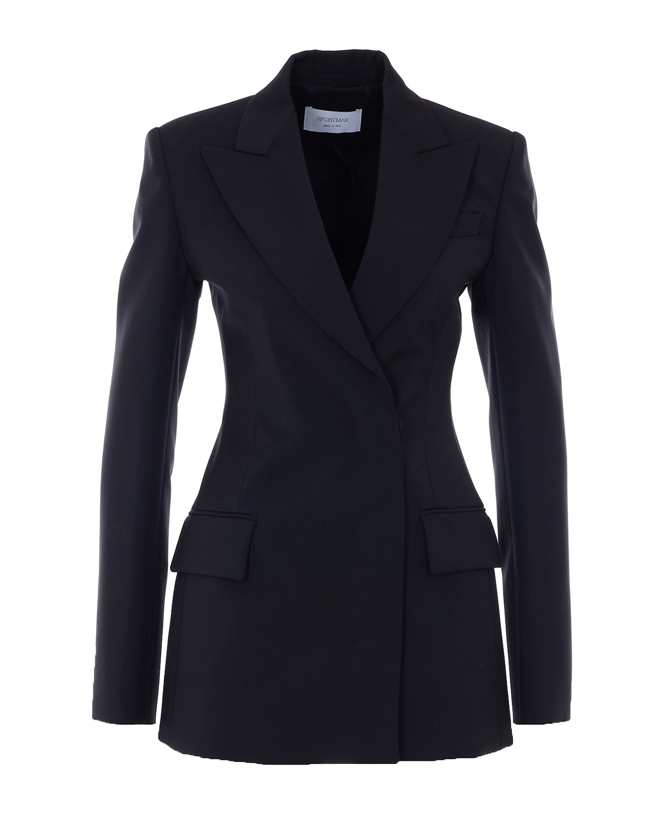 Sportmax black Fate jacket with frontal asymmetrical buttons closure, V-neck, long sleeves, reinforced shoulder, buttons on cuffs
