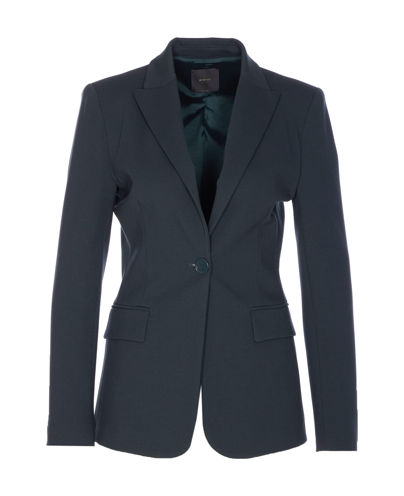 Max Mara green New Signum jacket with frontal button closure, reinforced shoulde,r V-neck, long sleeves, buttons on cuffs Composition: 67% Viscose, 28% Nylon, 6% Elastane, 67% Acetate, 33% Polyester