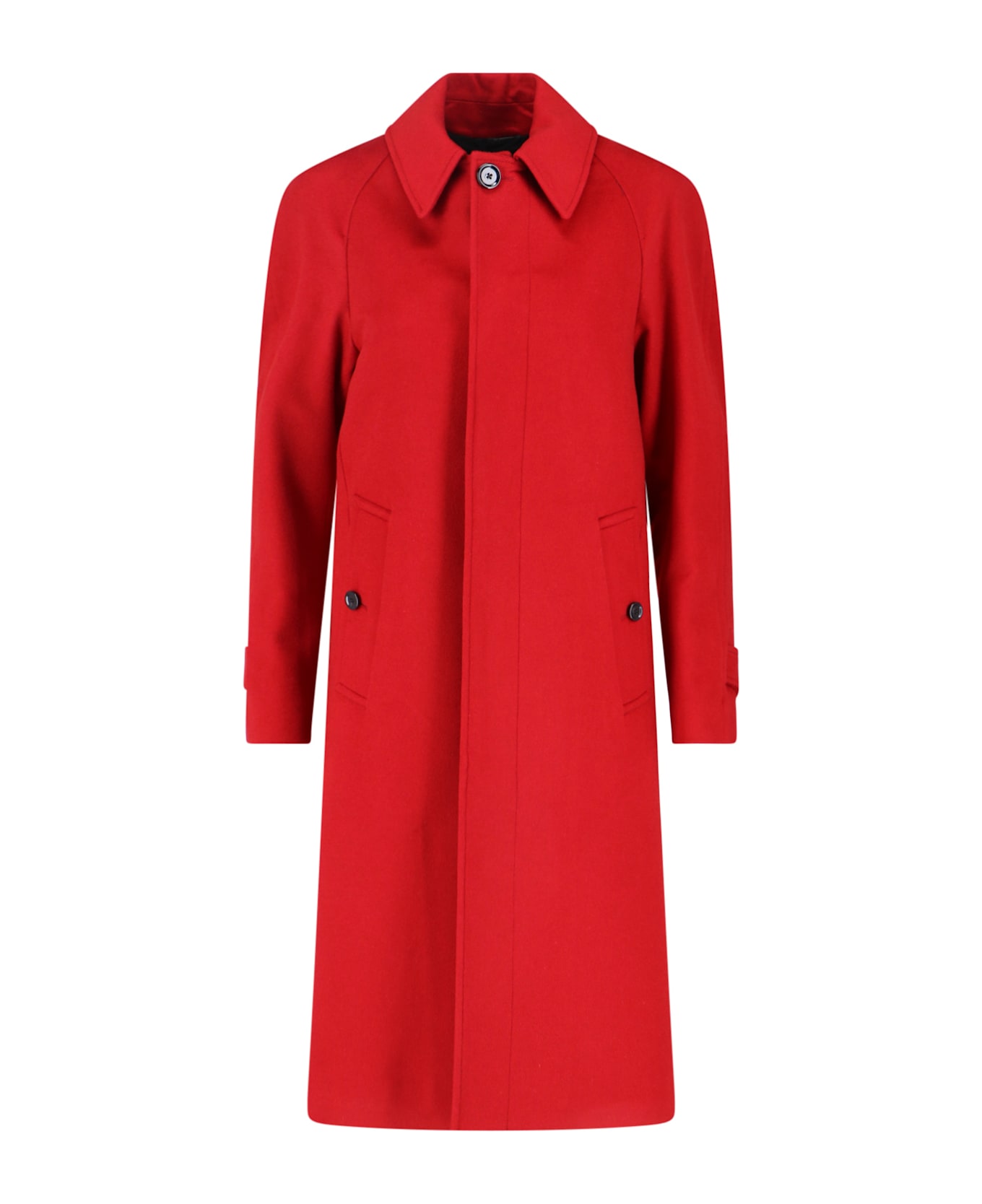 Lardini red cashmere coat made exclusively for Sugar, classic collar, button closure, two side button pockets, button cuffs, maxi back split, straight hem. Composition: 100% Cashmere