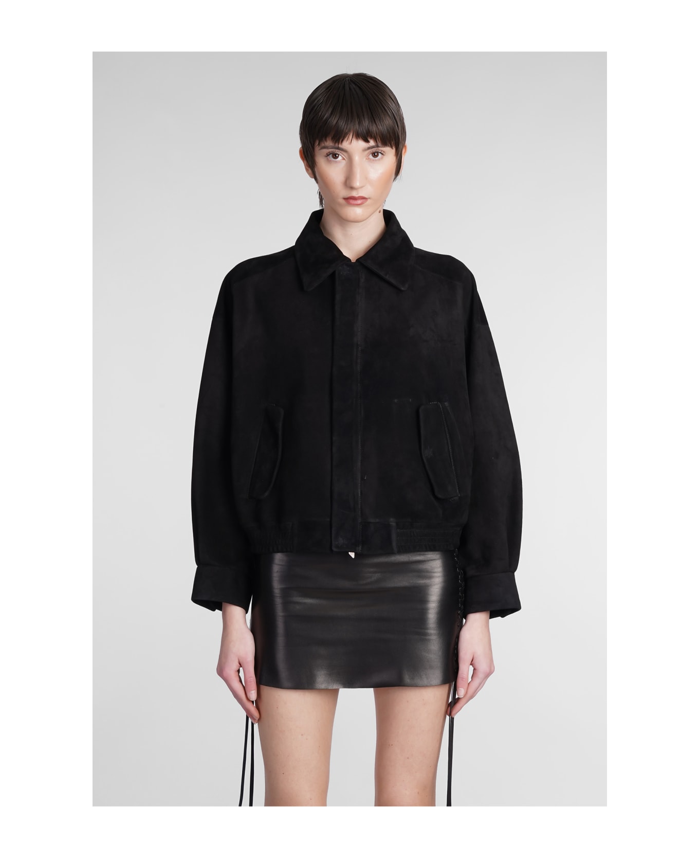 Coat in black leather, frontal buttoning, collar, long sleeves, pockets, 100% ovine leather, Made in Italy