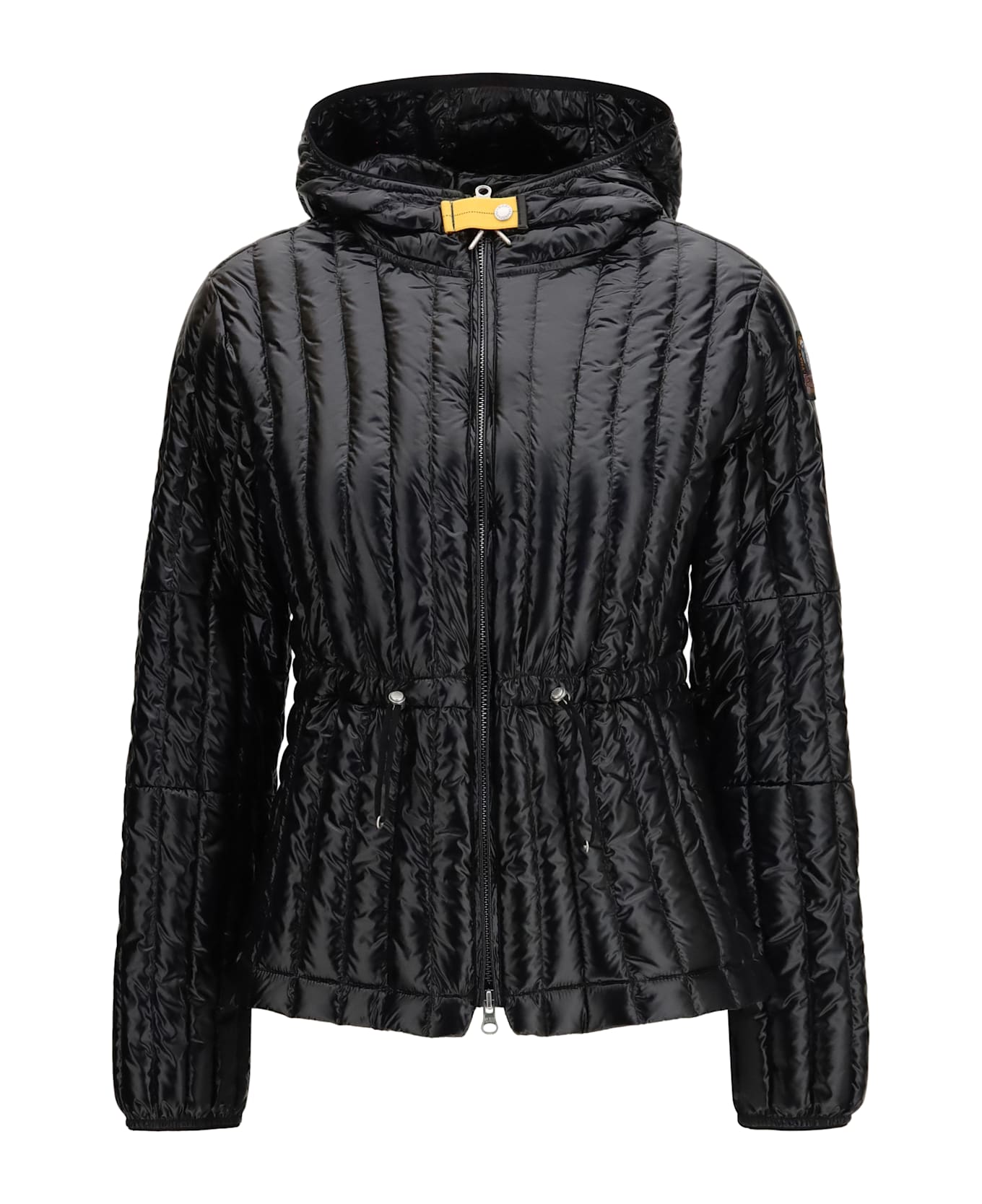 The kuon light short down jacket by parajumpers delivers a contemporary approach to outerwear, balancing lightness and functionality. crafted from semi-gloss recycled nylon taffeta with a water-repellent finish, it features a padded construction designed for transitional seasons. the silhouette is defined by a front double-slider zip closure, a hood and cuffs trimmed with lycra for enhanced comfort. zipped front pockets and an adjustable drawstring waist add practical versatility, while the logo patch on the sleeve and the iconic yellow neck tape provide a distinctive signature touch.