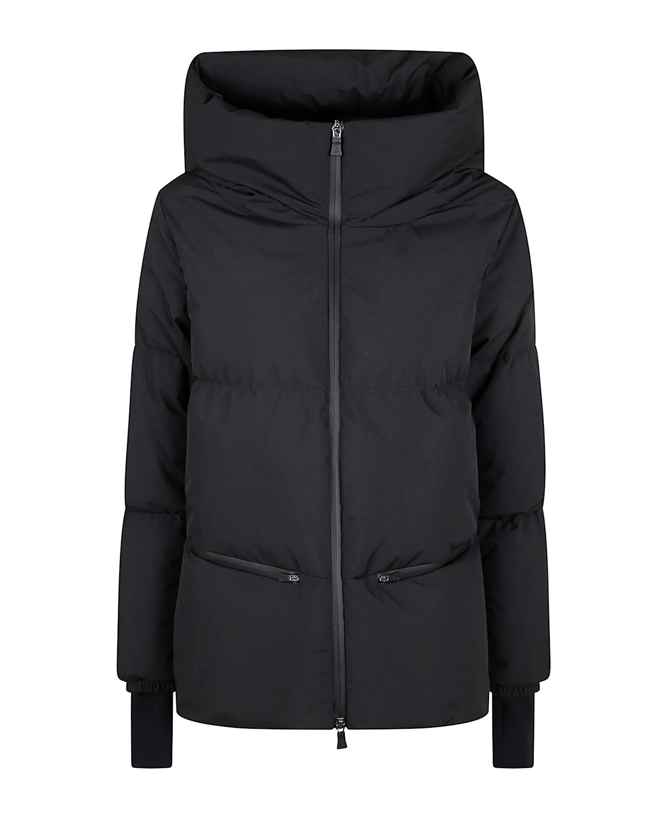 black padded design zip fastening, front zip pockets, elasticated cuffs, high collar