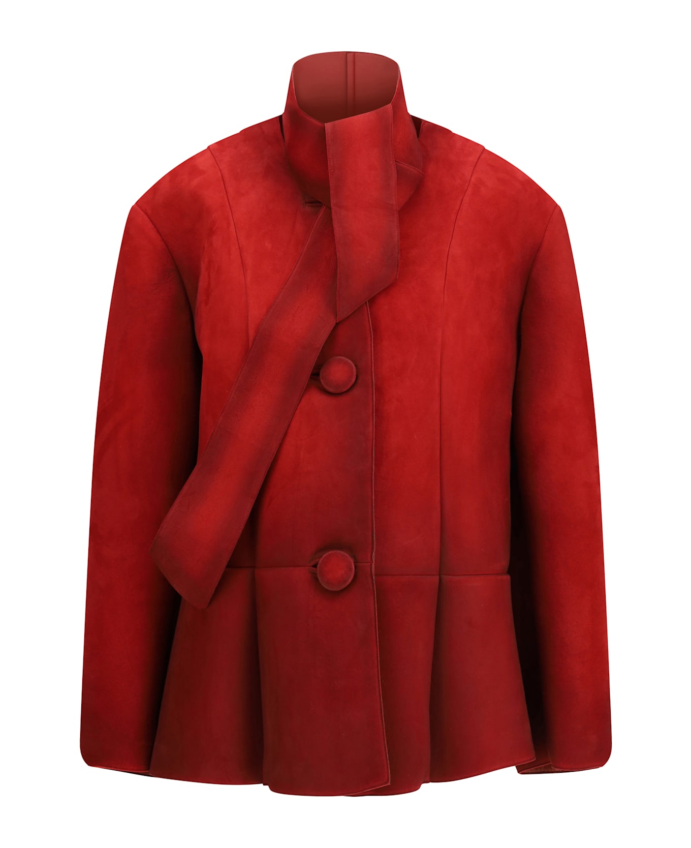 The bonded suede jacket by prada blends timeless sophistication with a vintage-inspired edge. crafted through innovative techniques that render the suede soft, lightweight, and subtly dimensional, the piece showcases pure lines and a refined tactile finish. its relaxed fit, straight sleeves, and concealed seam pockets contribute to an effortlessly elegant silhouette, while the central button closure maintains classic structure. a gentle vintage treatment enhances the texture with nuanced tonal variations, and the matching scarf adds an understated layer of refinement embodying prada s modern vision of luxury with a nostalgic twist.