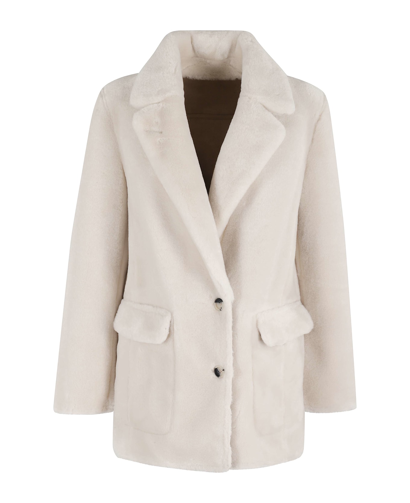 Jacket - Urbancode - Cream color - Revered collar - Button closure - Flap and button side pockets - Faux fur fabric - Regular fit
