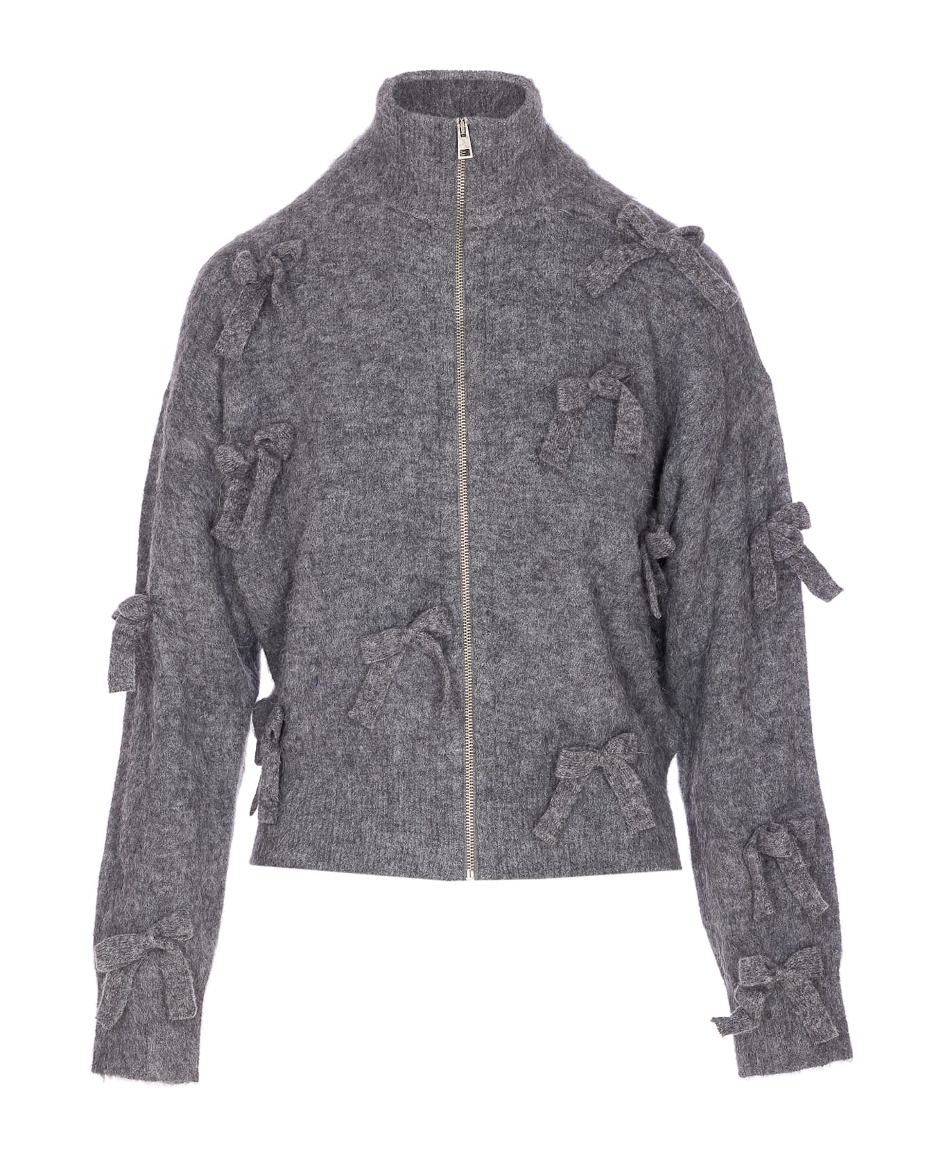 Aniye By grey zip bomber, knittedm long sleeves, high neck, all over bow details Composition: 31% Acrylic, 30% Polyamide, 28% Alpaca, 10% Wool 1% Elastane