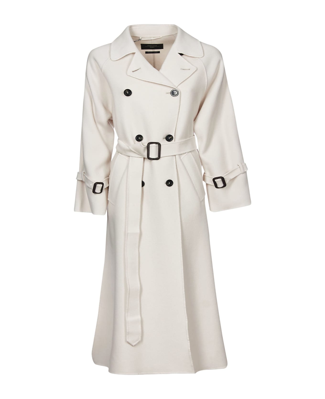 Double Breasted Trench Coat from Max Mara: White Double Breasted Trench Coat with wide notch collar, long sleeves, belted cuffs, front button fastening, belted waist and mid length.