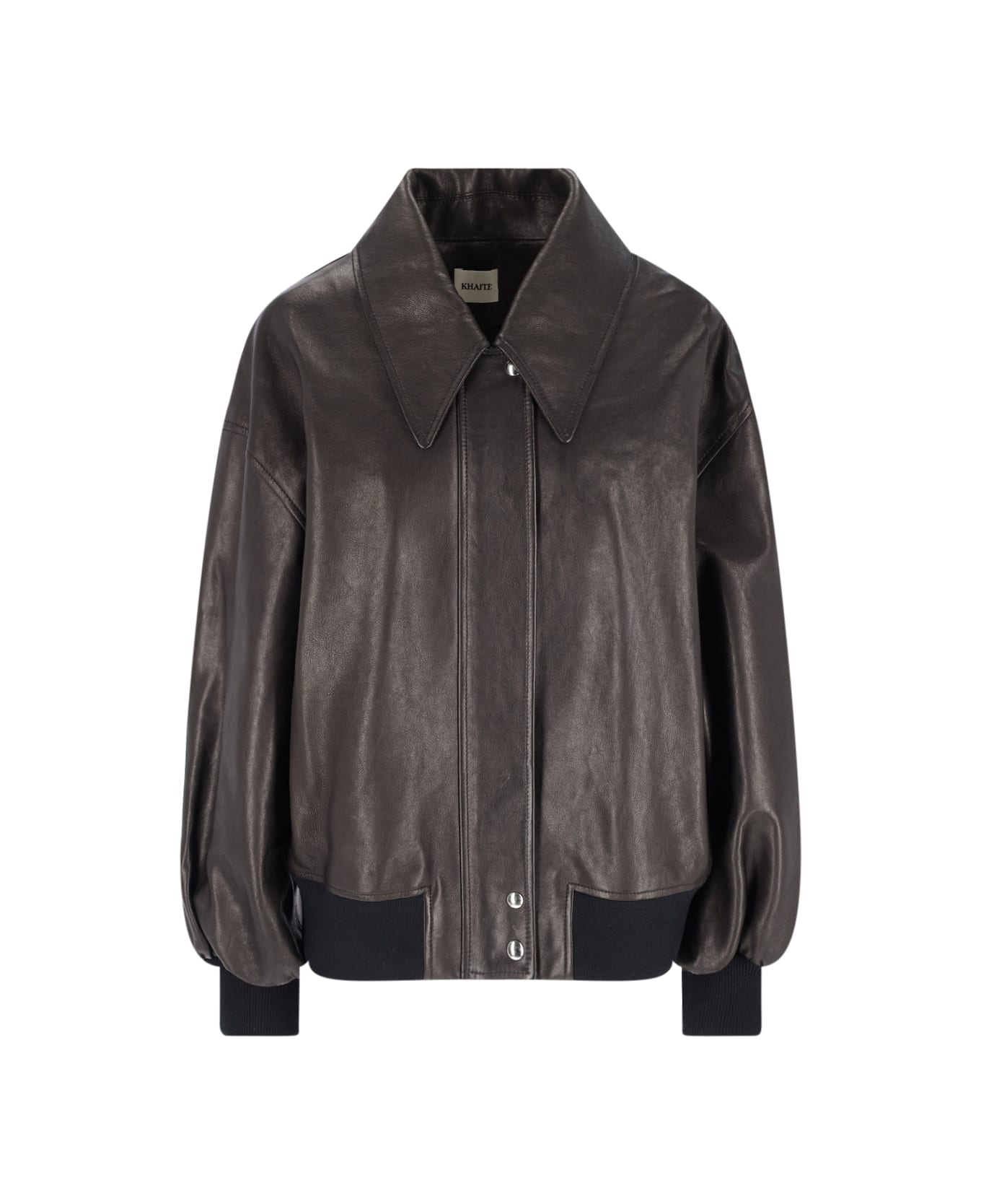 Khaite Shelman jacket in black lamb leather with pointed collar, double zip and concealed button closure, long sleeves, ribbed trim on the waist and cuffs, straight hem. Composition: 100% Lamb Leather