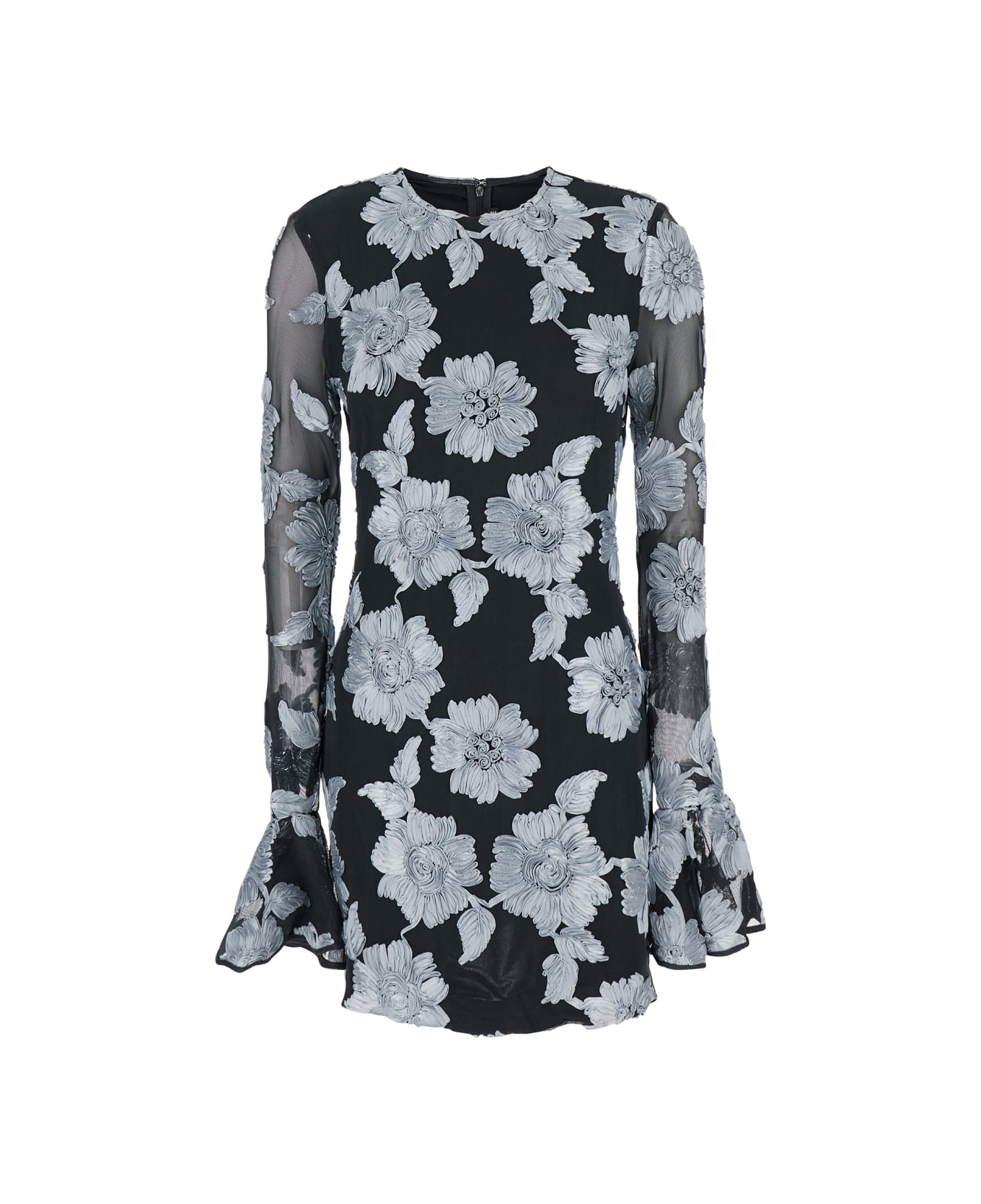 Floral Mesh Long Sleeve Mini Dress