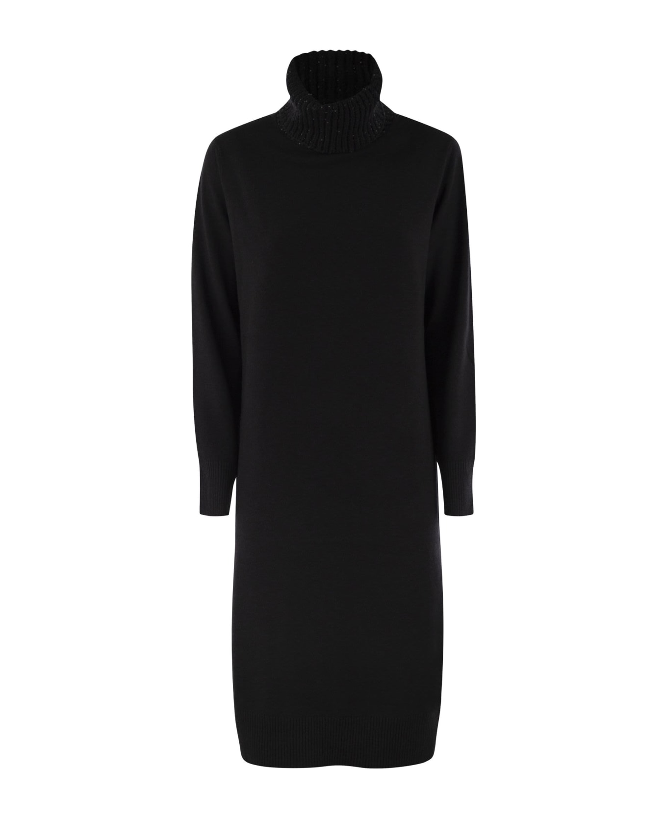 The new Fabiana Filippi collection presents this wool, silk and cashmere dress. Thanks to the fine fabric, the dress remains soft to the touch and extremely comfortable. Characterised by the high collar with sequins that give the garment its luminosity. - High neck with sequins - Long sleeves - Below-the-knee length - Straight fit DESIGNER ID: ABD224F659I918 825
