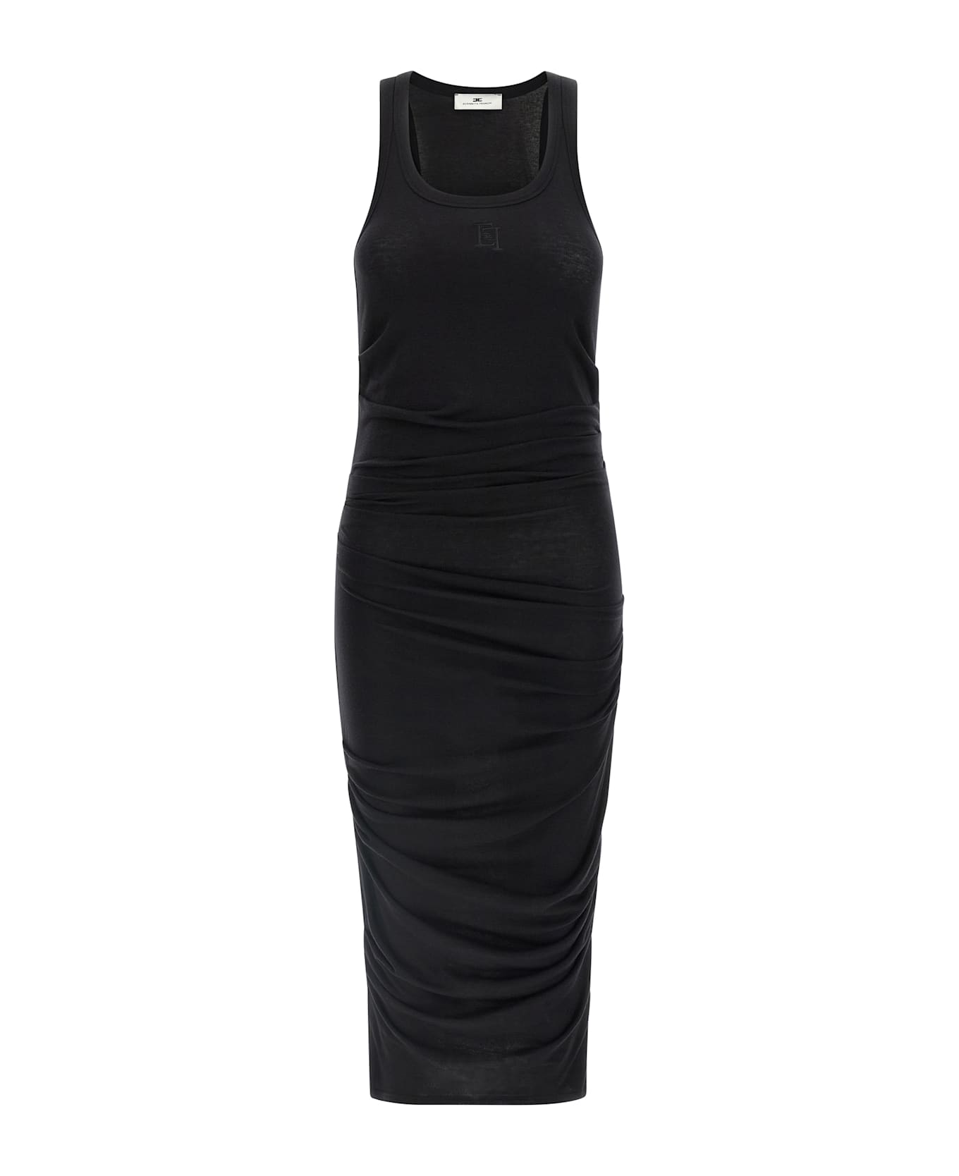 Midi dress in light semi-transparent jersey, square neckline and tone-on-tone logo embroidery on the front, sleeveless, side drapes. Composition: 76% ly, 20% wo, 4% ea