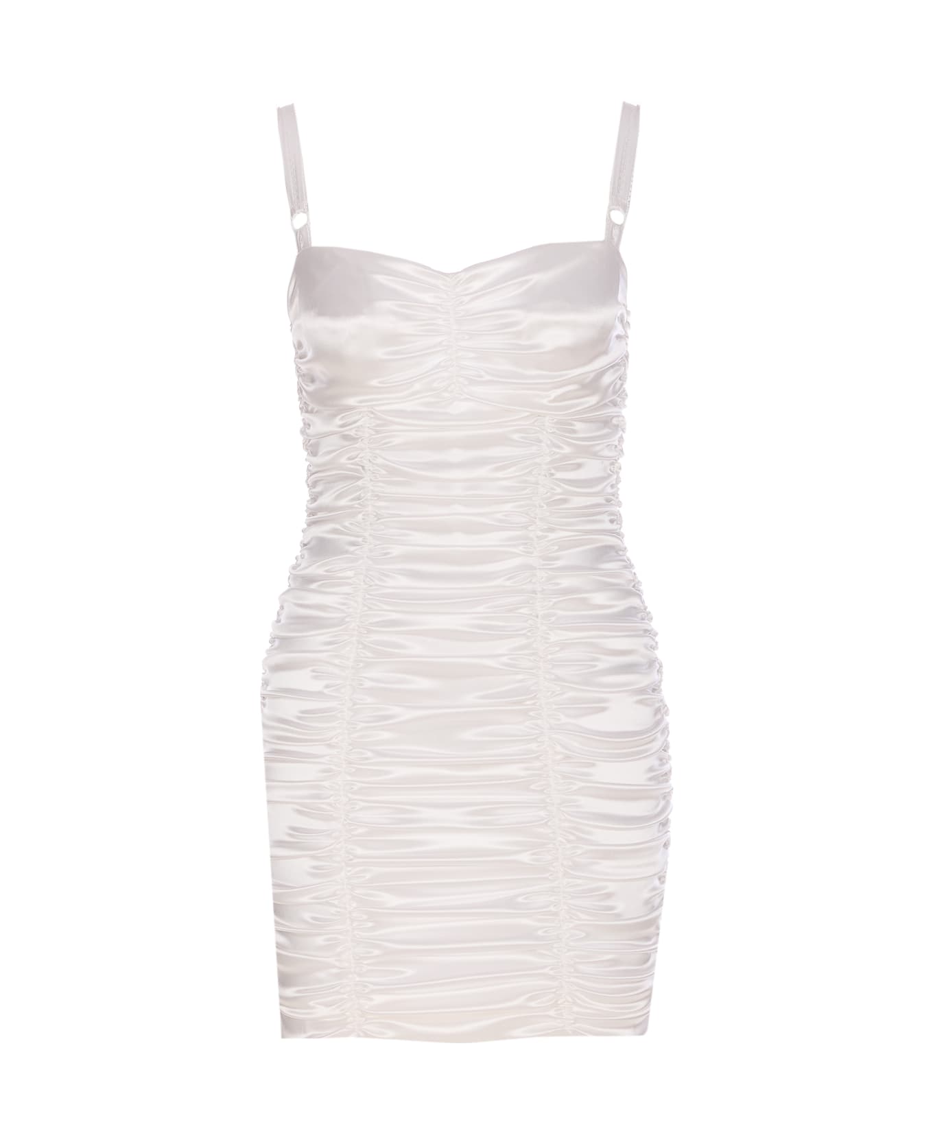 Dolce&Gabbana white mini dress, zip closure on the back, adjustable thin shoulder strap, tight fit Composition: 63% Acetate, 26% Polyamide, 5% Silk, 4% Elastane