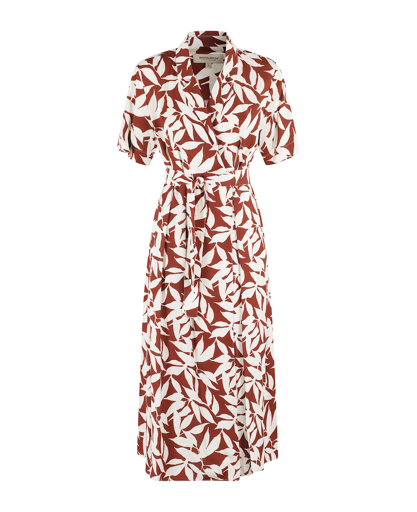 Fluid dress - Woolrich - floral print, white and red - v-neck with reverse - wrap closure - half sleeves - below-the-knee length
