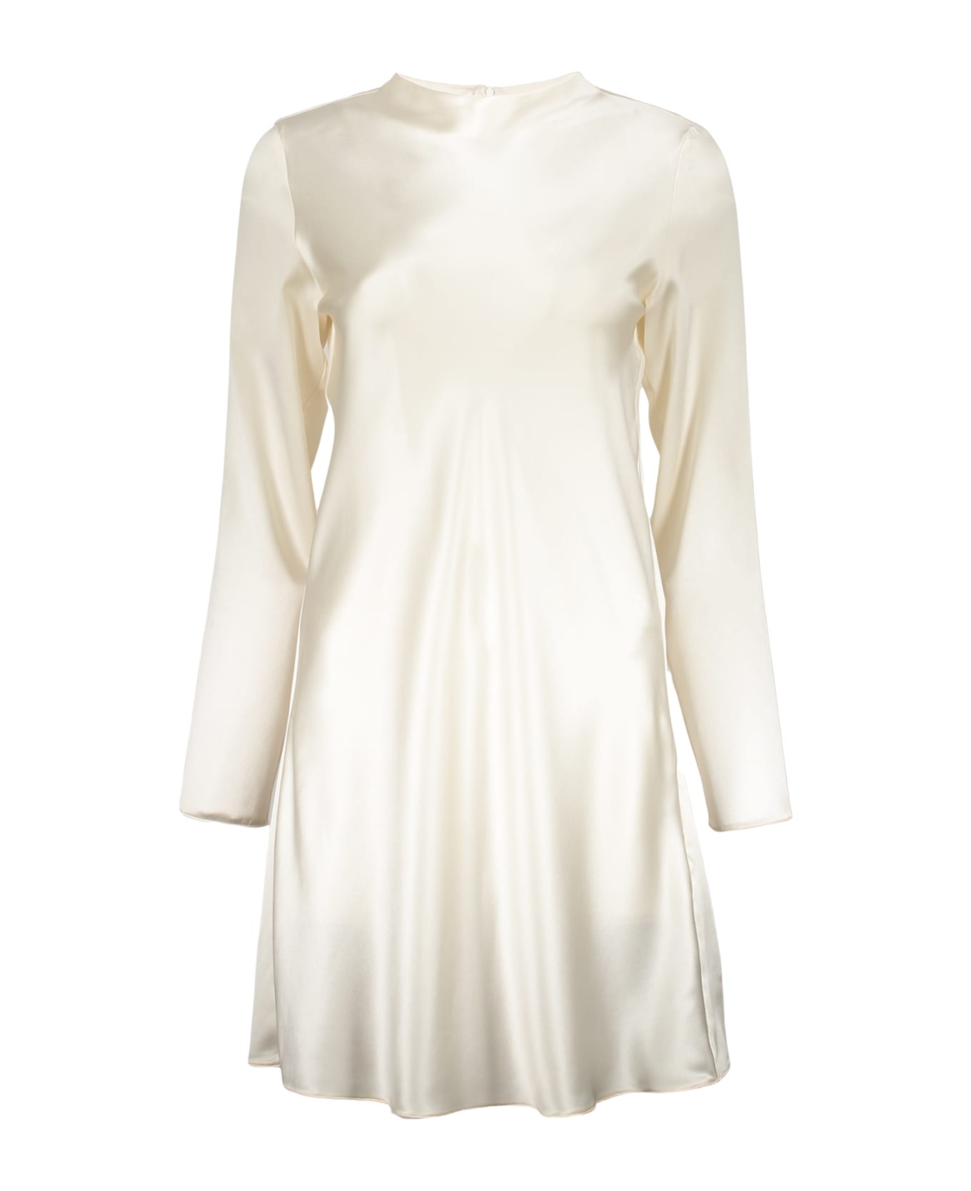 Stand up collar back zip closure flared hem 96% silk, 4% elastane Composition: 96% % Silk, 4% % Elastane
