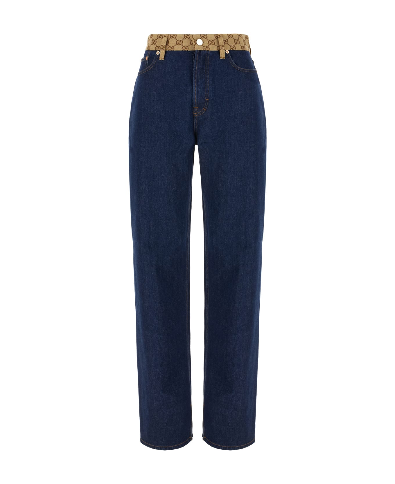 Jeans realized in pure cotton denim enriched by contrasting fabric insert at the waist contrasting logoed leather label at the back. -Belt loops at the waist -Concealed buttons with a single visible button closure -Five classic pockets