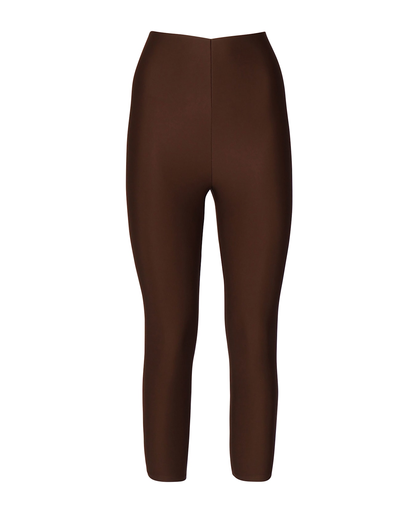 -Made of shiny lycra -Fitted design -Size shown in photo is XS -Color: Coffee