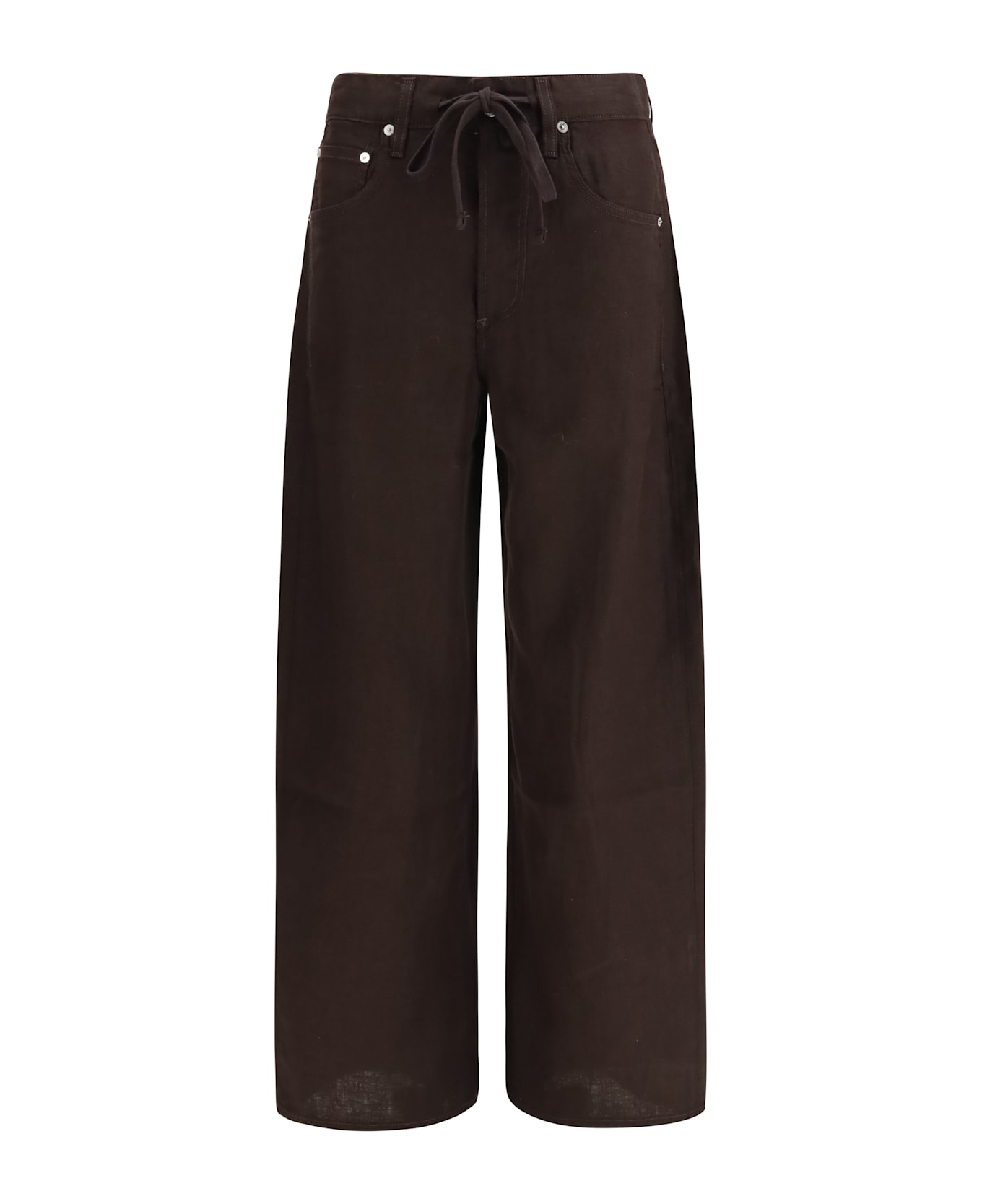 The brynn drawstring pants by citizens of humanity are made from linen, a lightweight and breathable material that is perfect for the summer season. the zipper, button, and drawstring closure offers an adjustable fit, while the 5-pocket style, with two side welt pockets, adds practicality and functionality. with a mid-rise waist, these pants combine comfort and casual style, ideal for a relaxed yet polished look. perfect to pair with a simple t-shirt or shirt for a versatile and chic outfit.