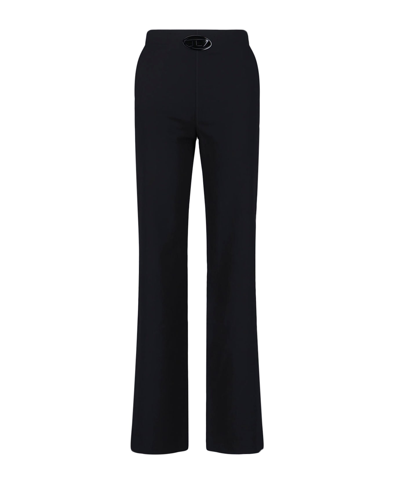 Diesel 'p-erseus' black wool blend pants with mid waist, side zip closure, oval d logo detail on the front, two side pockets, two back welt pockets, straight leg. Composition: 53% Polyester, 43% Wool