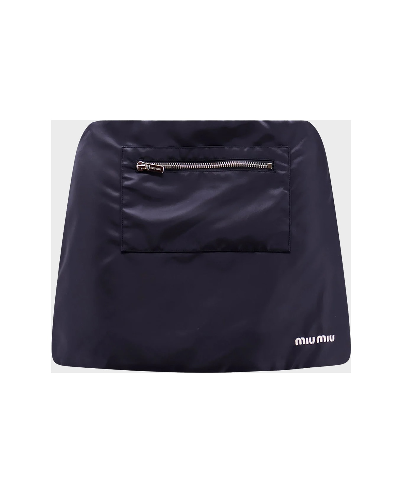 Blue skirt from Miu Miu featuring frontal zip pocket, logo and mini length. Composition: _, 100% Polyamide