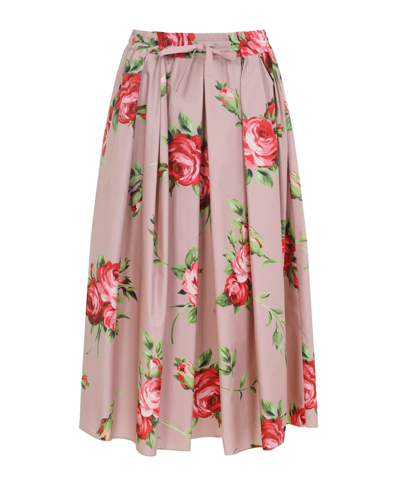 Elastic waistband Adjustable drawstring Side welt pockets Rose print Unlined Made in Italy 100% cotton SKU: F4DC7THS5UTHF5ZN