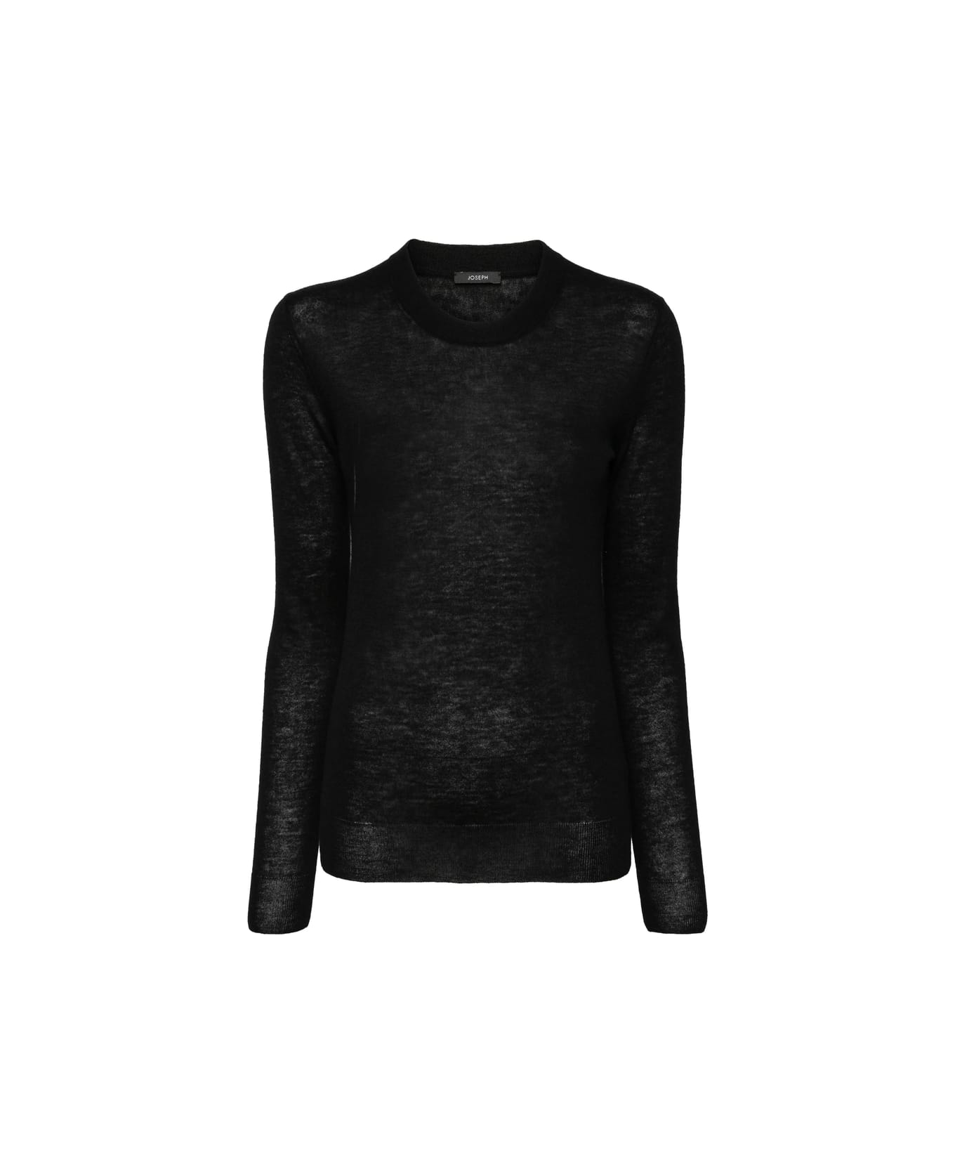 black cashmere knitted construction fine ribbed crew neck long sleeves ribbed cuffs and hem straight hem