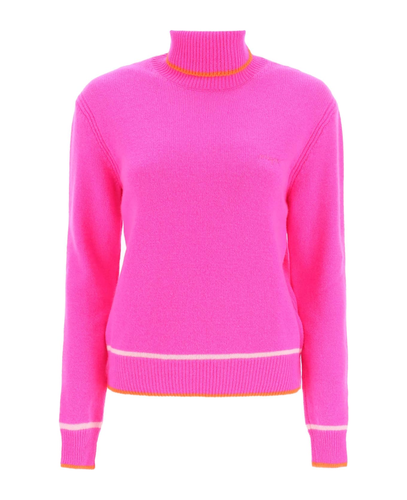 MSGM turtleneck sweater in lightweight wool and cashmere yarn, with tonal logo embroidered at chest. Contrasting-detail ribbed edges, regular fit. The model is 177 cm tall and wears a size XS.