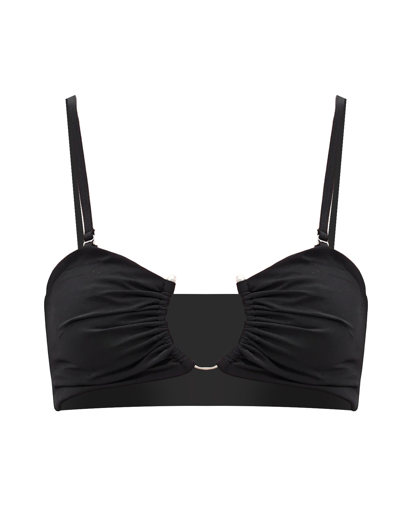 - Made of stretch Lycra - Adjustable and removable straps - Half-moon hardware - Size shown is XS - Color: Black
